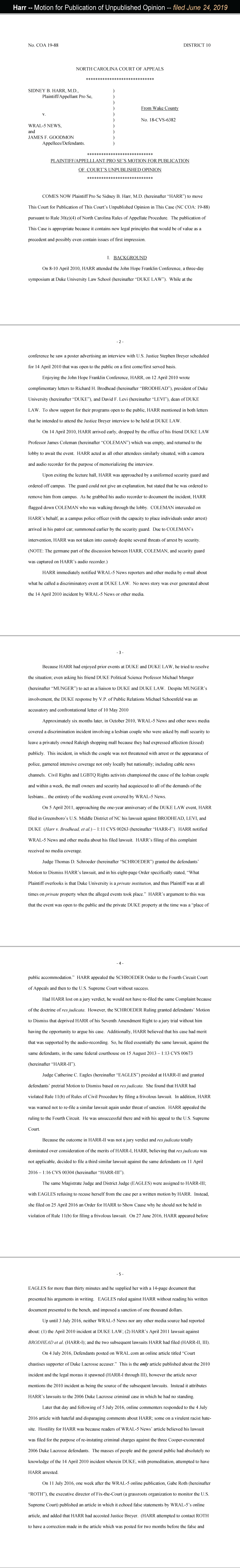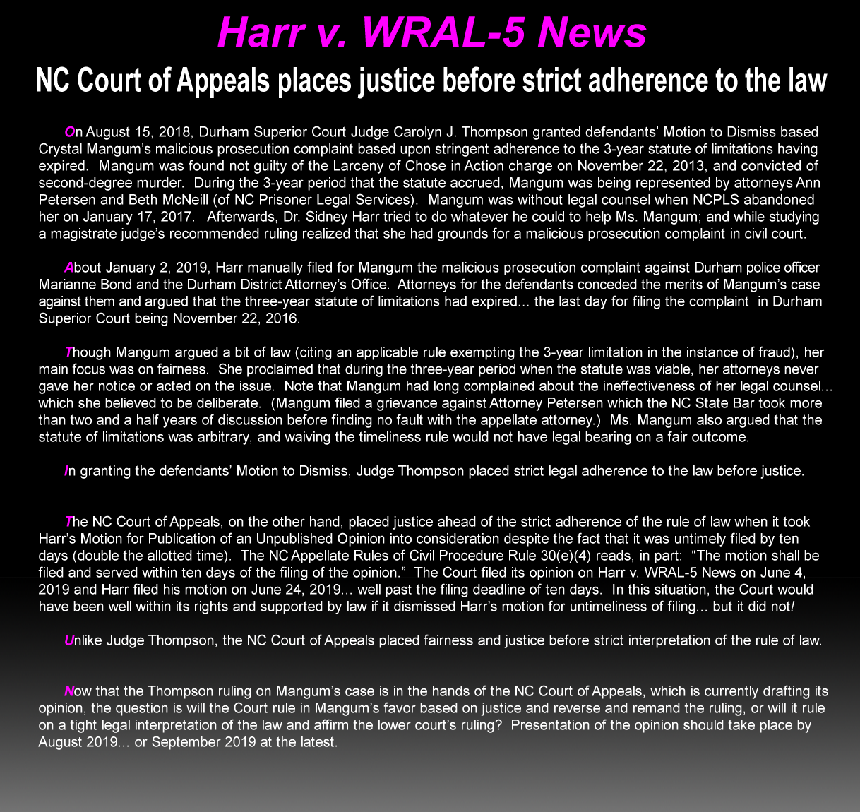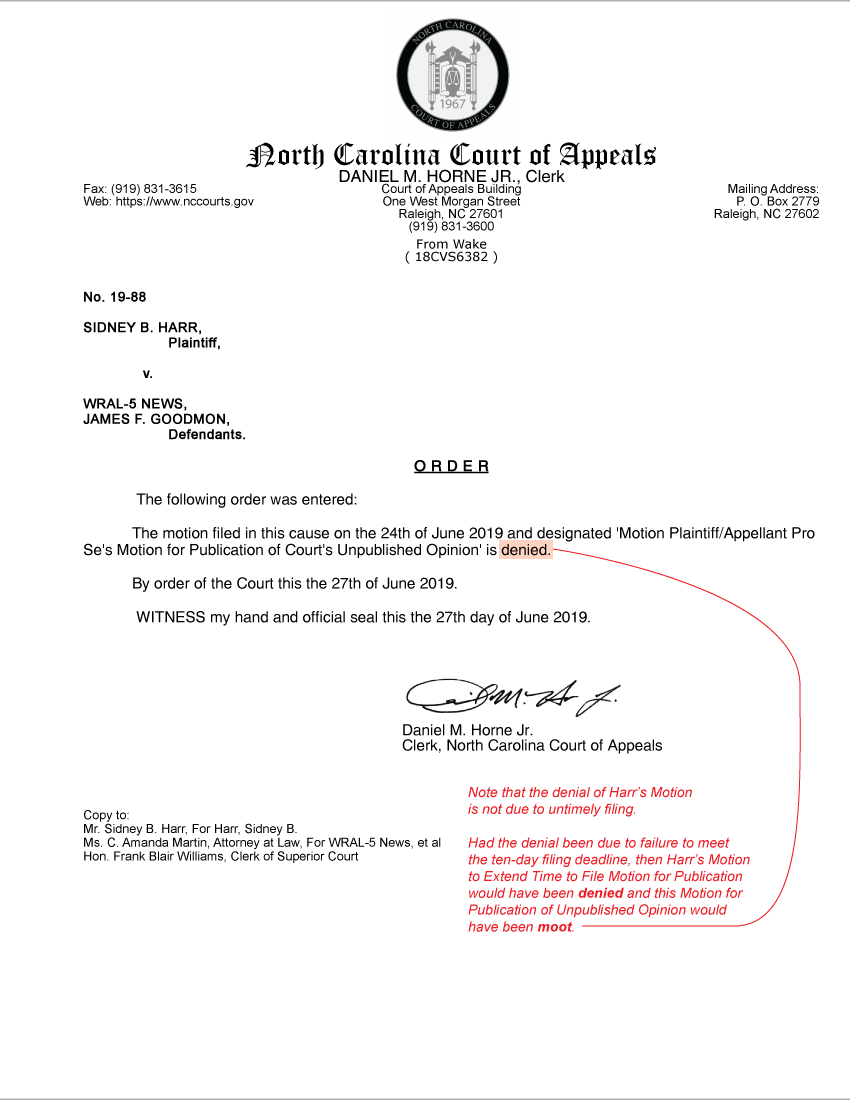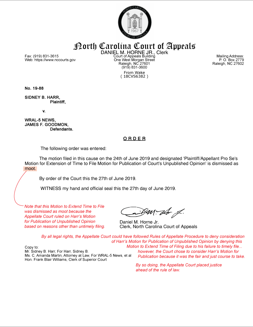 Harr v. WRAL-5 News: NC Court of Appeals places justice ahead of rule of law