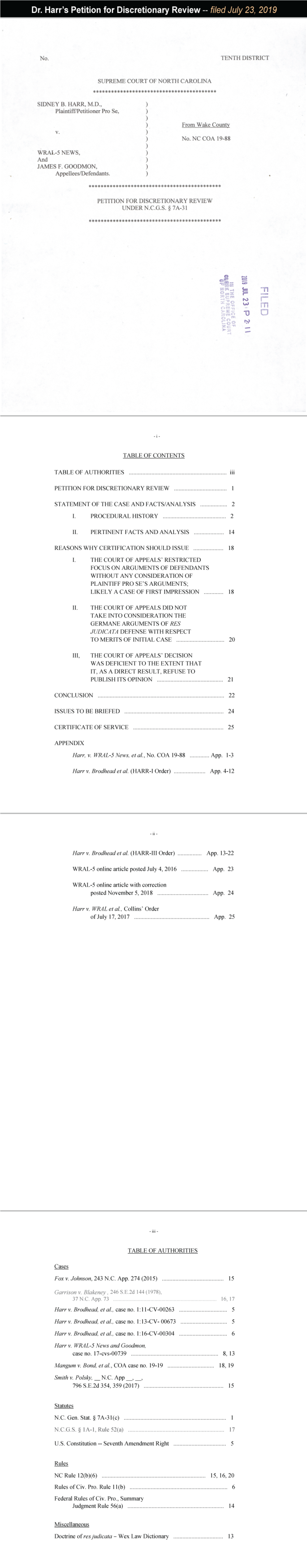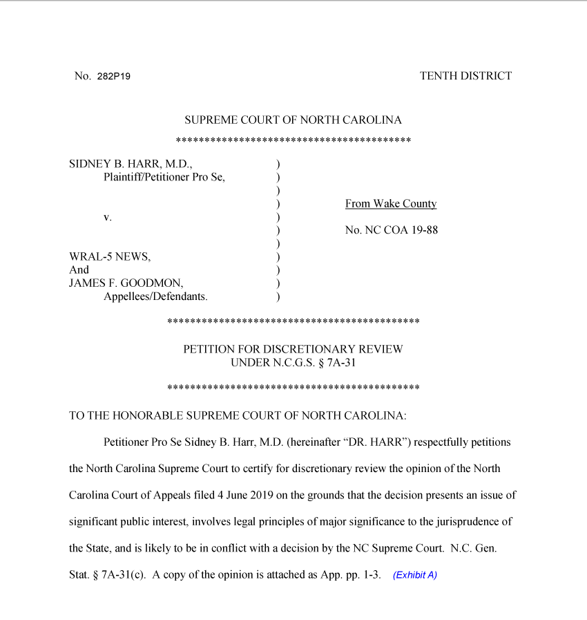 Harr v. WRAL-5 News: Petition for Discretionary Review