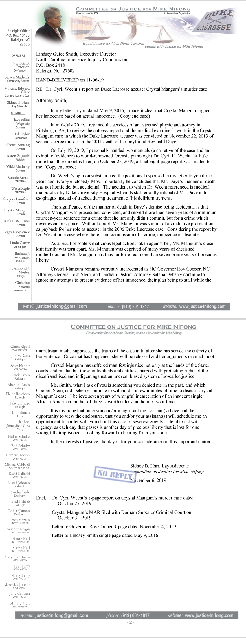 Letter to Lindsey Smith, Executive Director of NC Innocence Inquiry Commission
