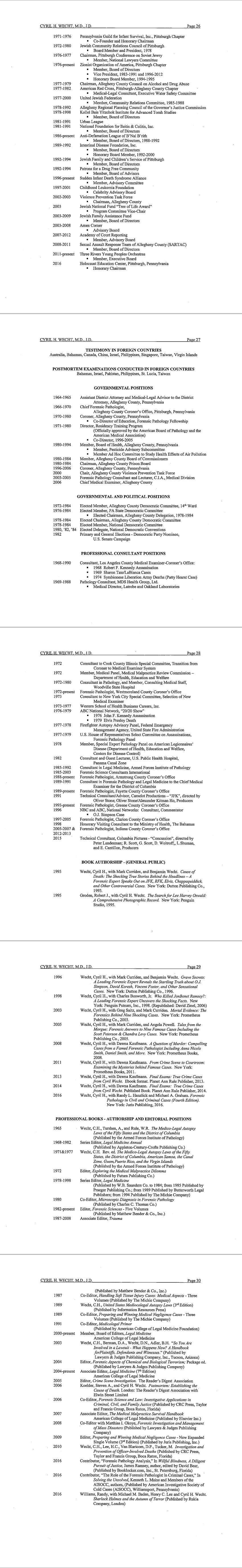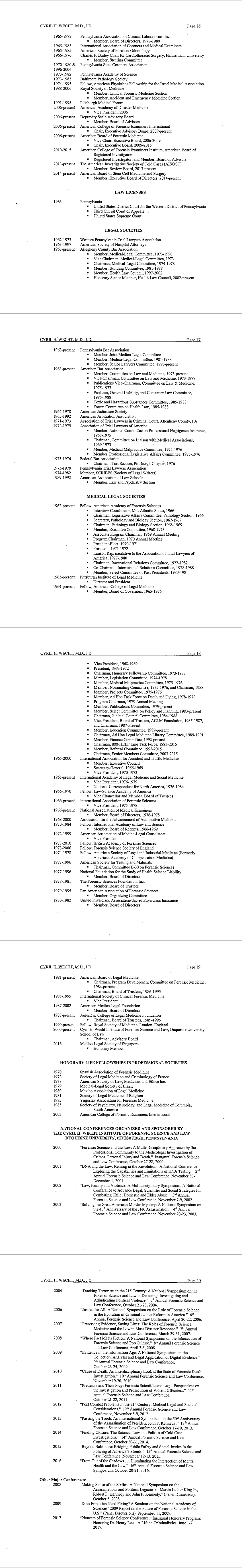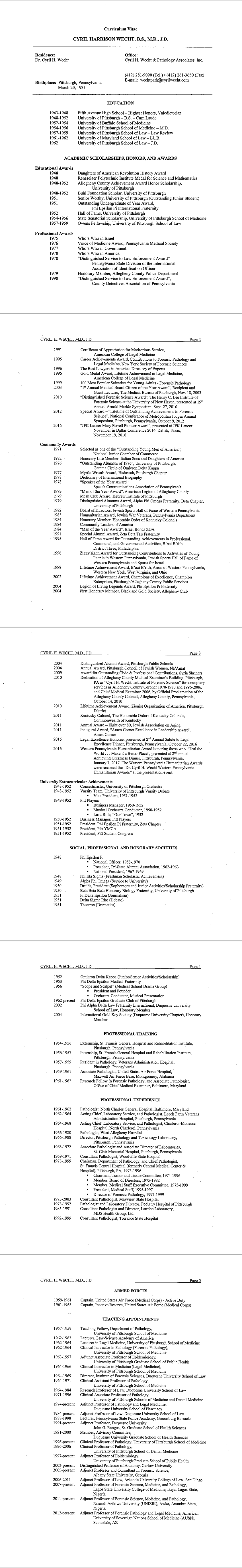Dr. Cyril Wecht's cirriculum vitae as of July 2019
