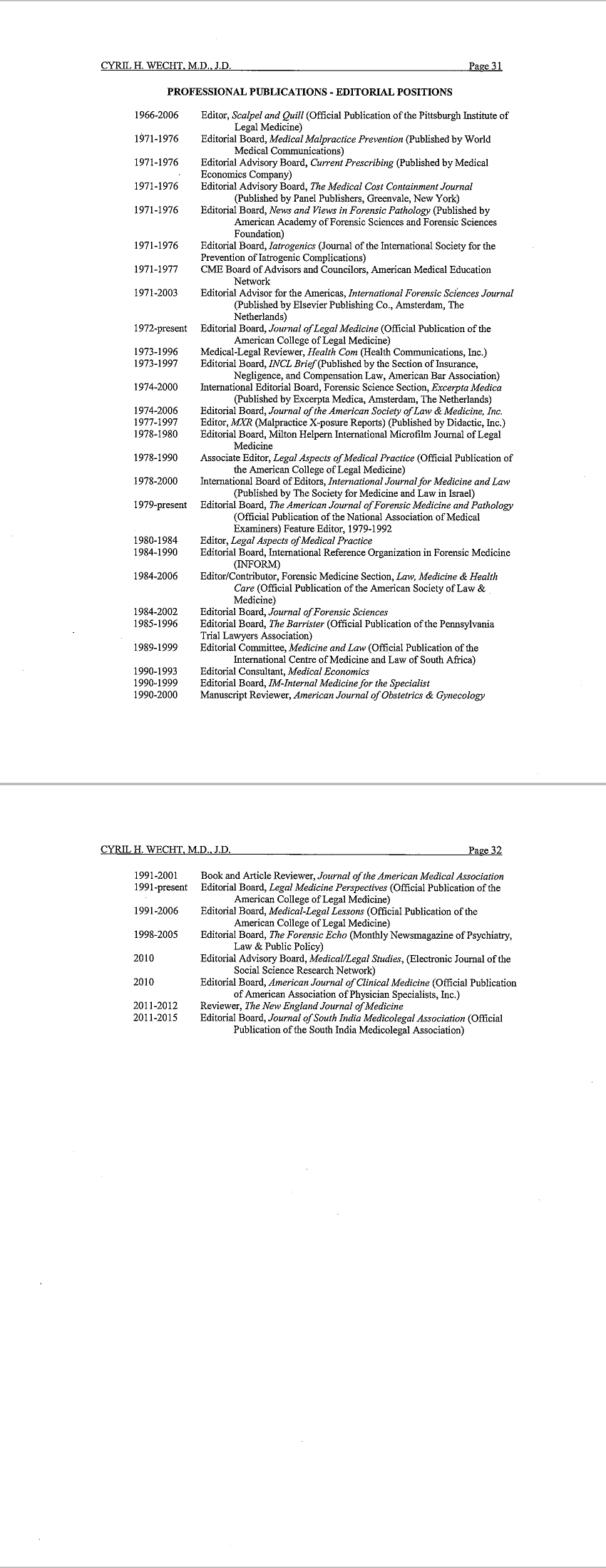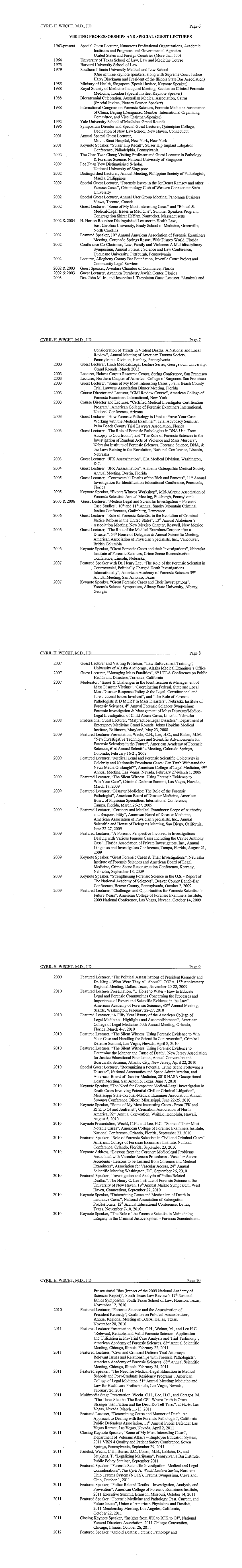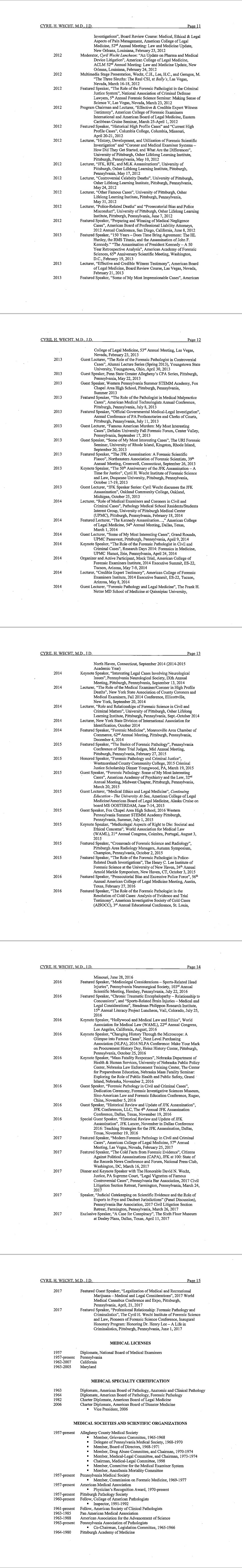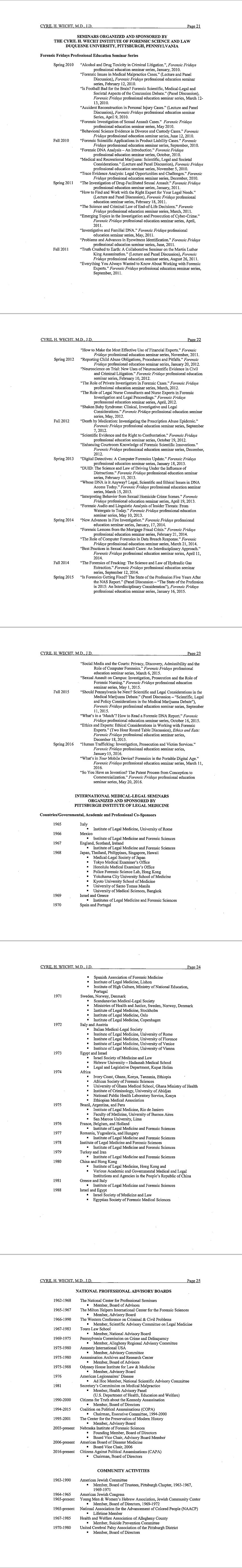 Dr. Cyril Wecht's cirriculum vitae as of July 2019