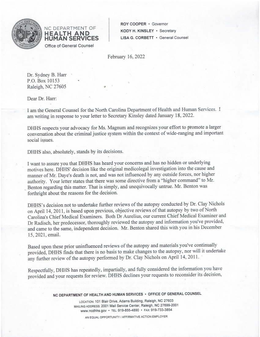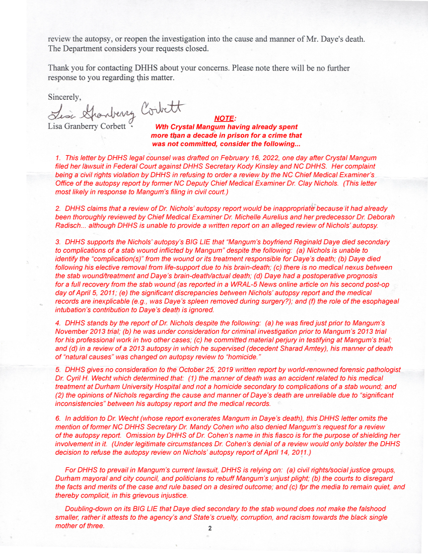 Letter from Lisa Granberry Corbett of February 16, 2022