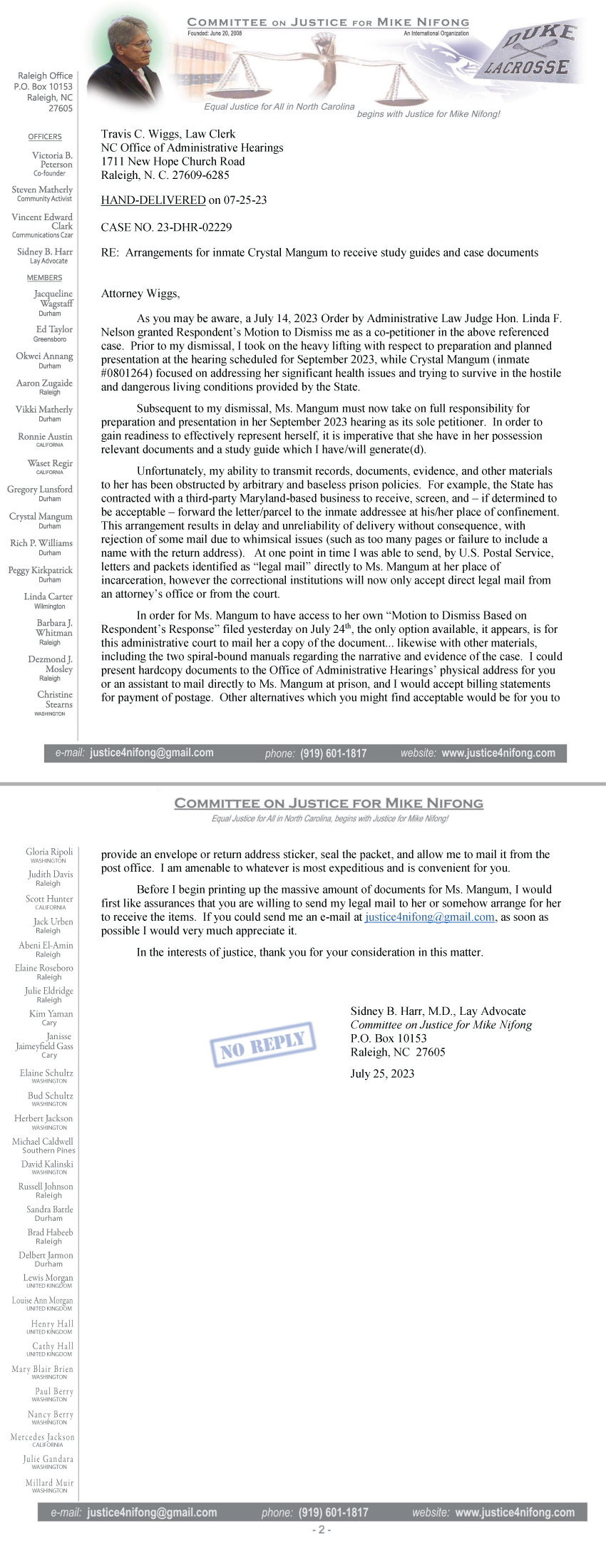 Letter from Harr to Travis Wiggs delivered on July 25, 2023
