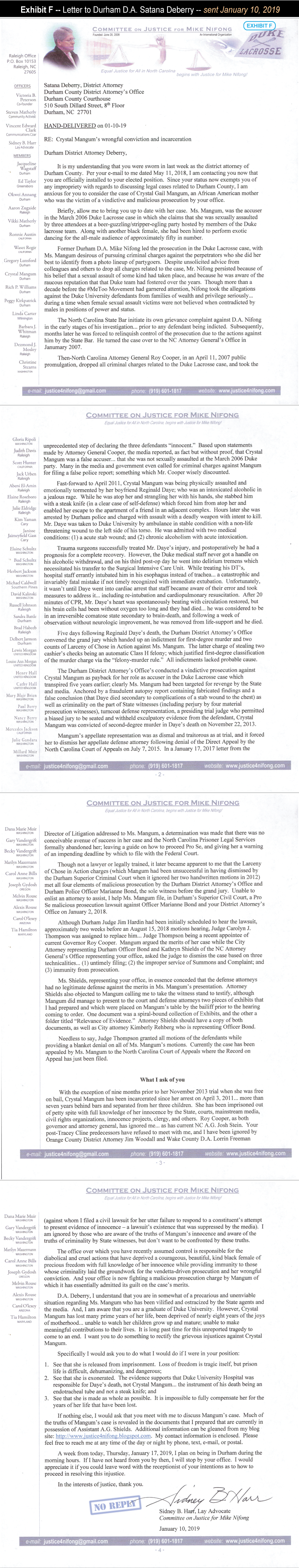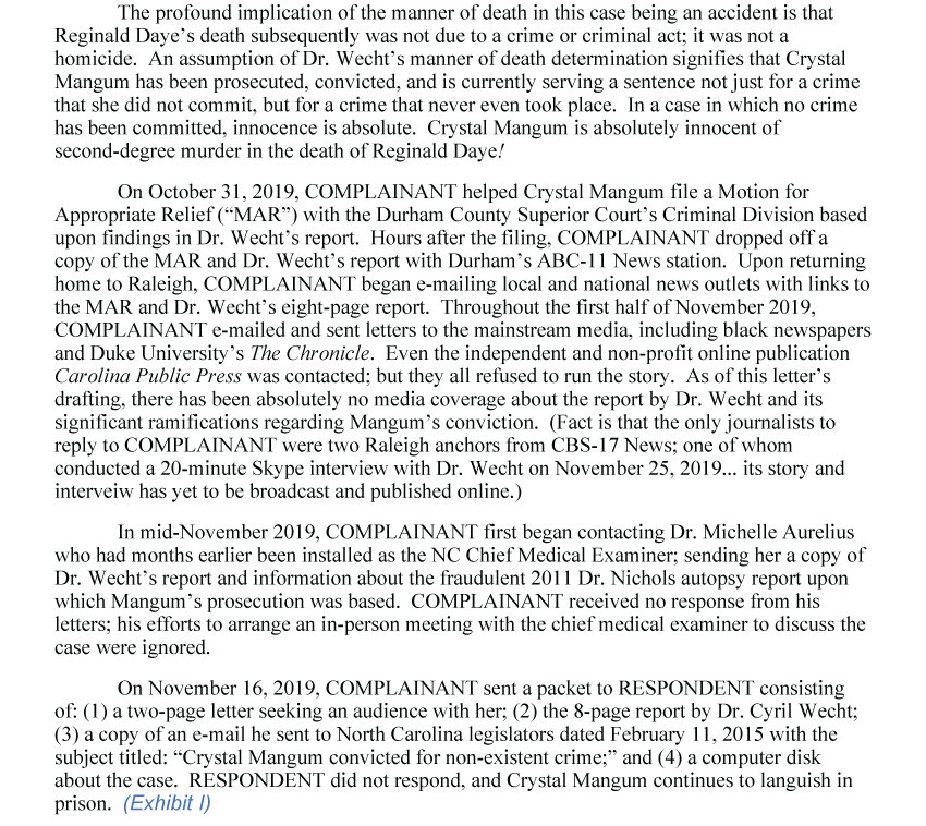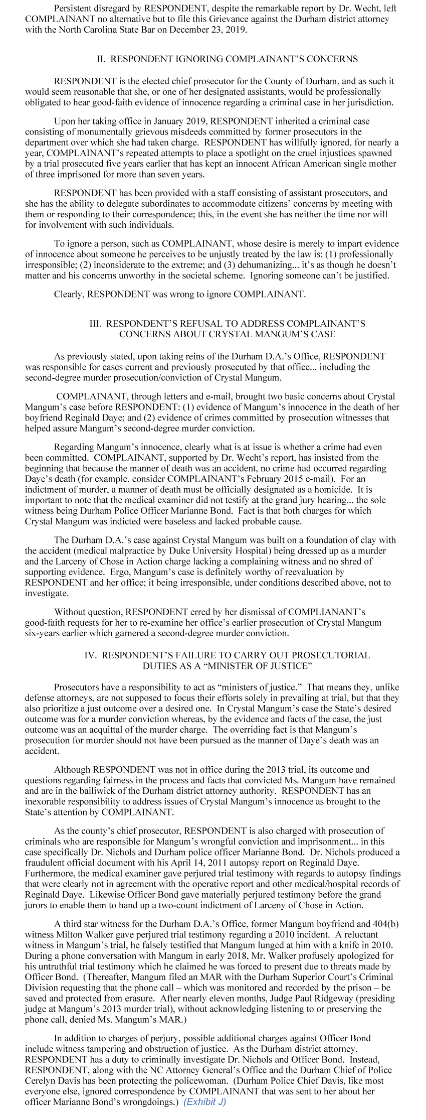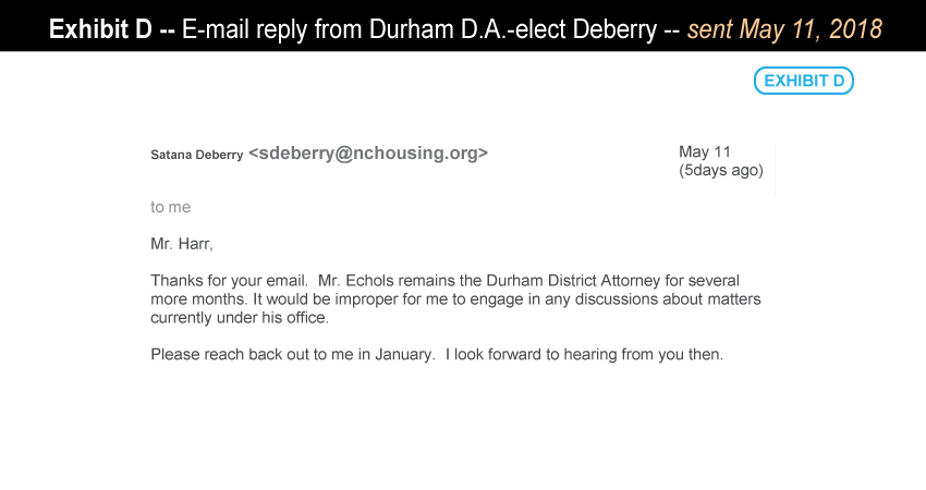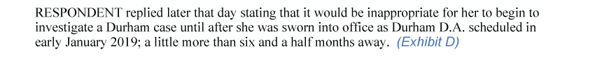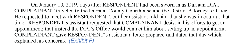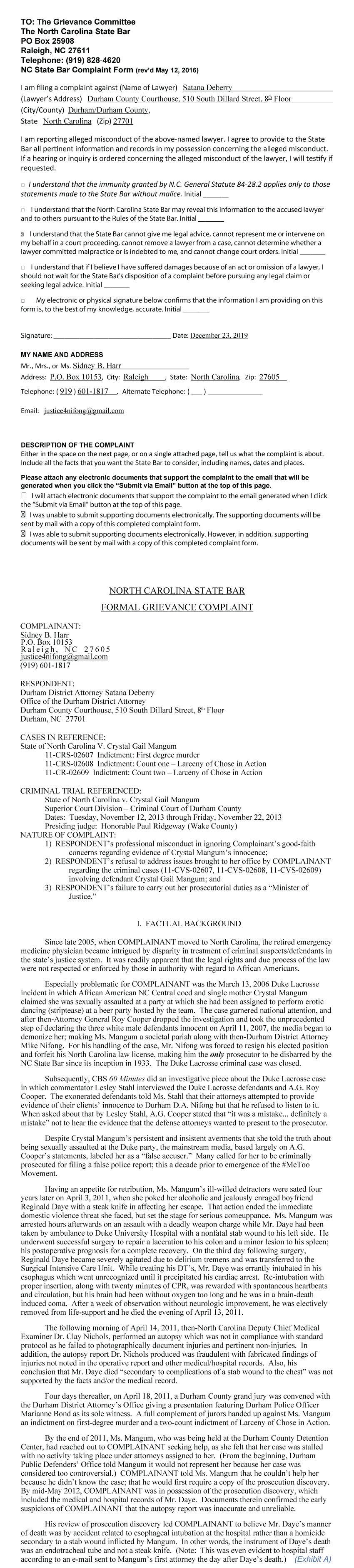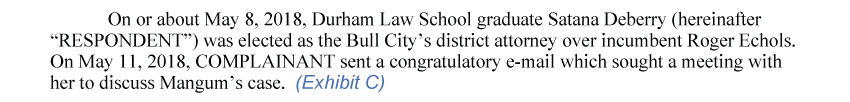 NC State Bar Complaint against Durham D.A. Satana Deberry filed December 23, 2019