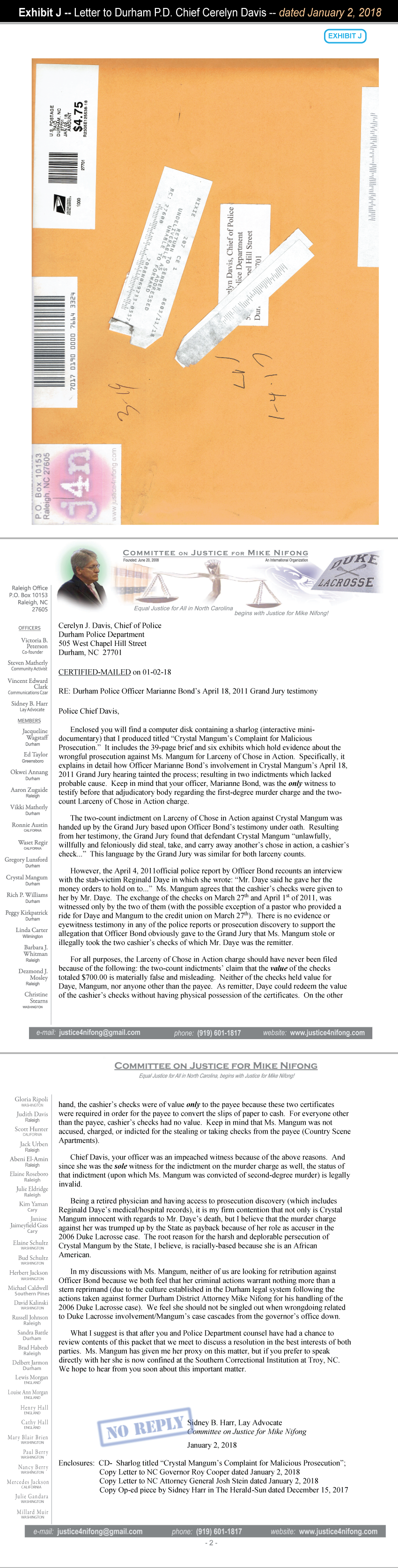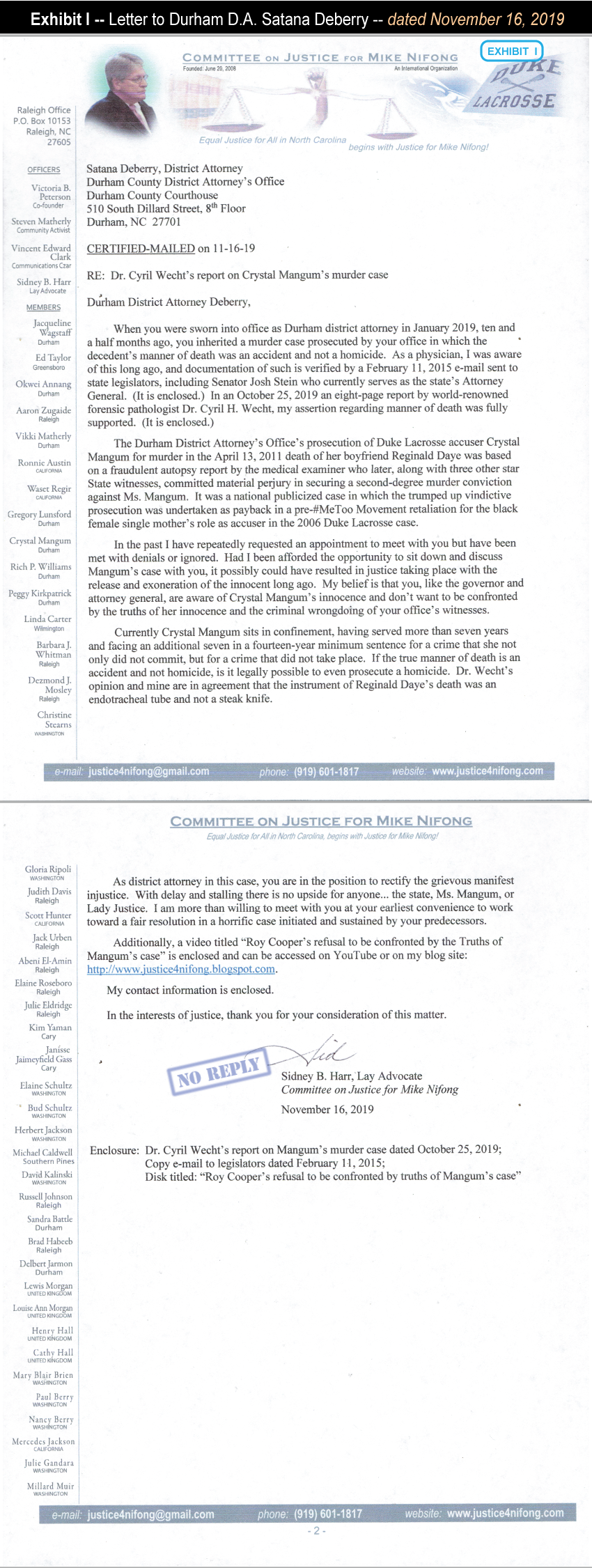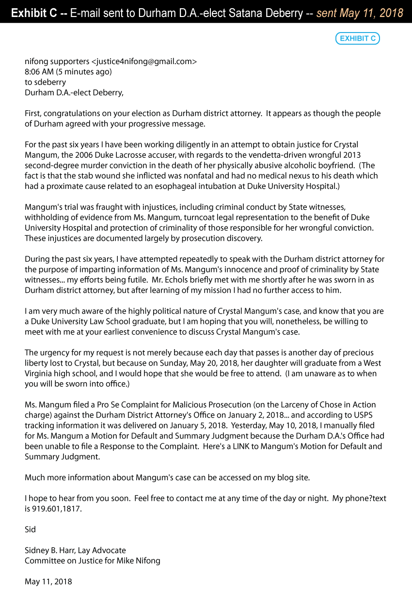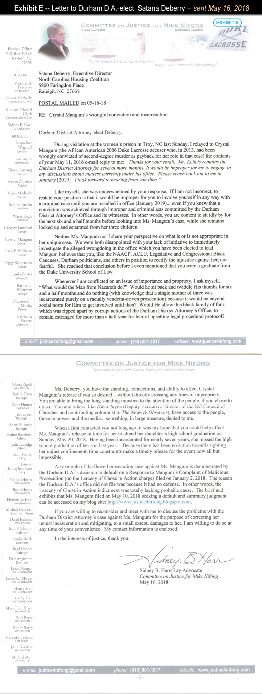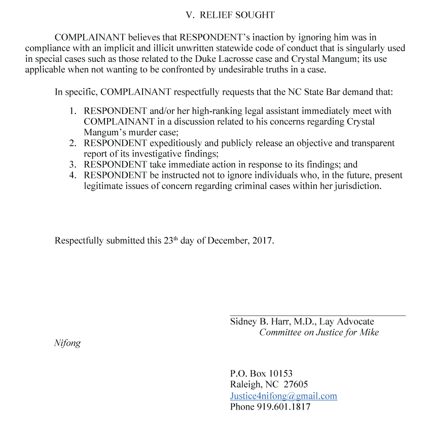 NC State Bar Complaint against Durham D.A. Satana Deberry filed December 23, 2019