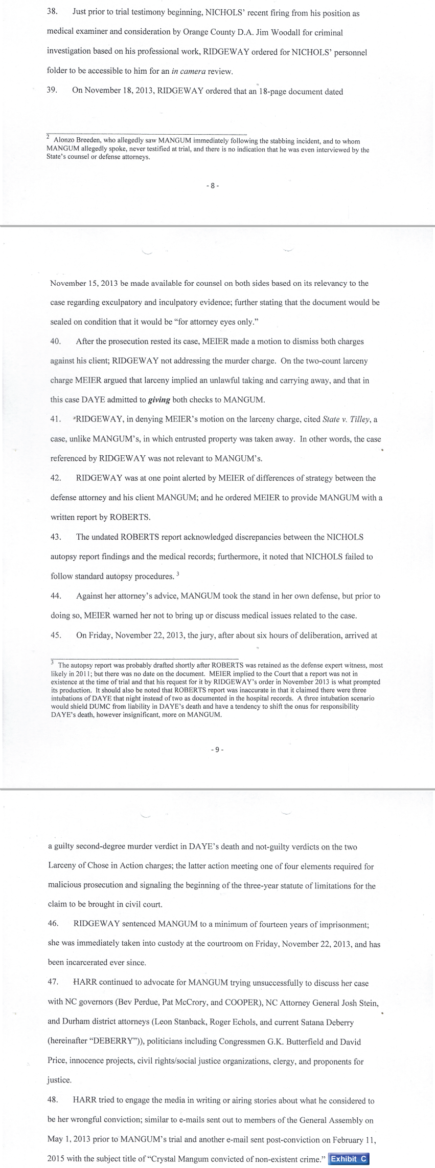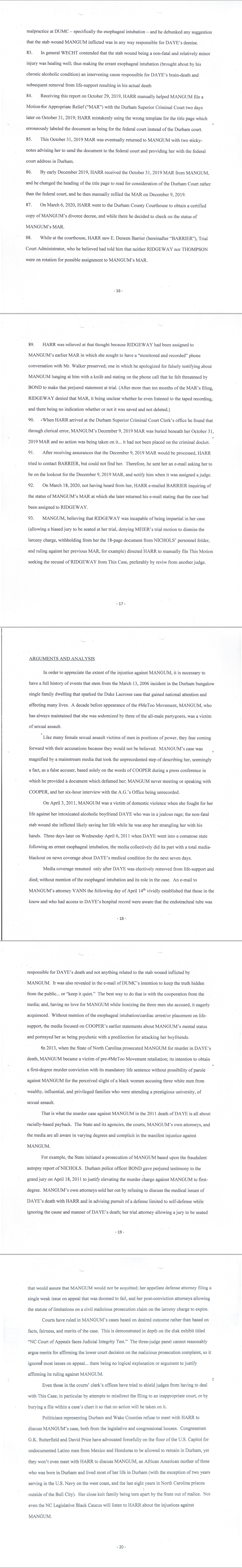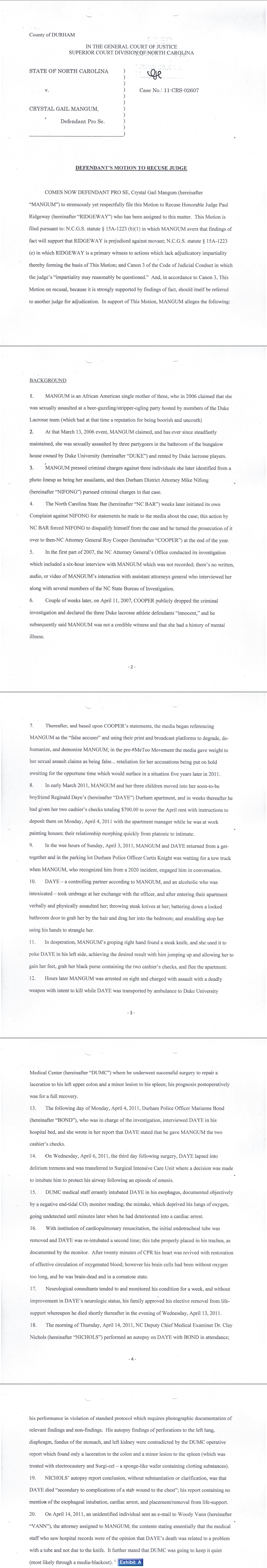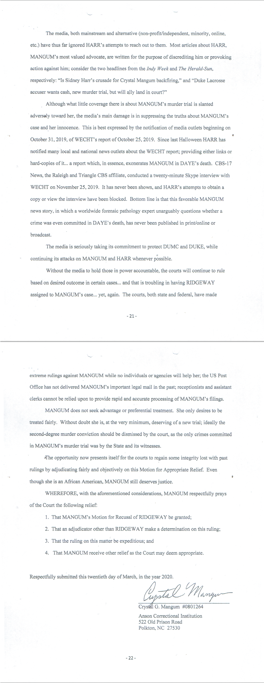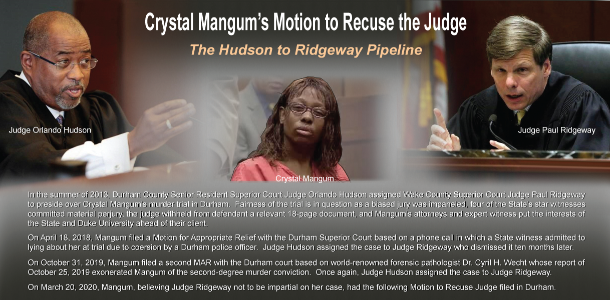 Crystal Mangum's Motion for Appropriate Relief: Motion to Recuse Judge March 20, 2020