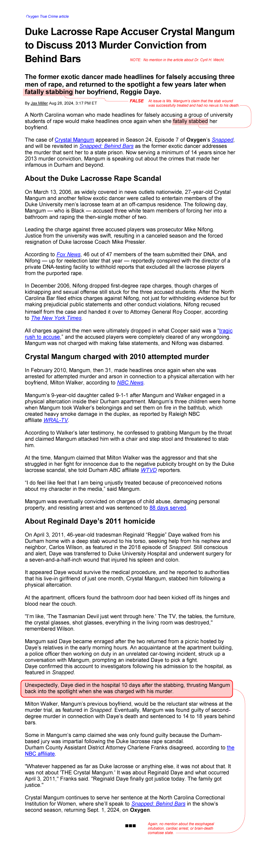 Oxygen True Crime news article about Snapped: Behind Bars dated August 28, 2024