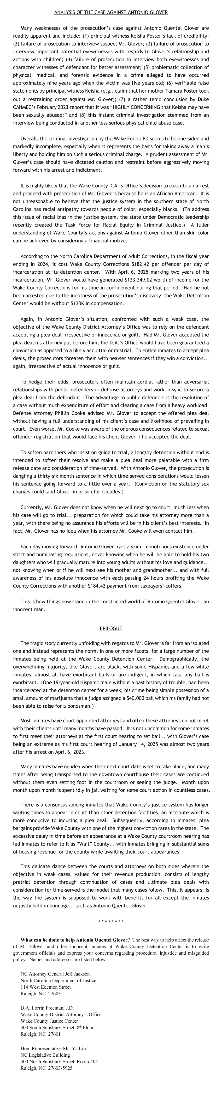 Antonio Quentel Glover: An Innocent Man