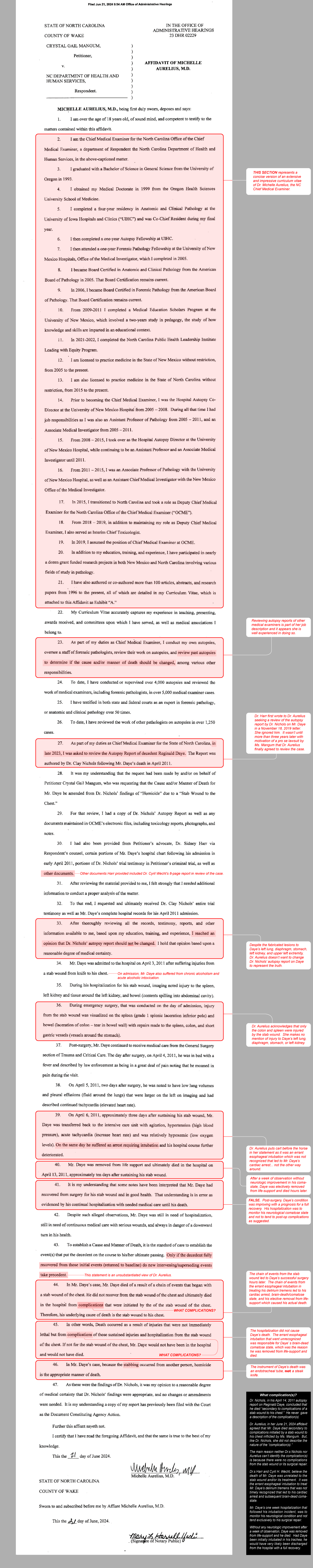 Dr. Michelle Aurelius affidavit (with notations)