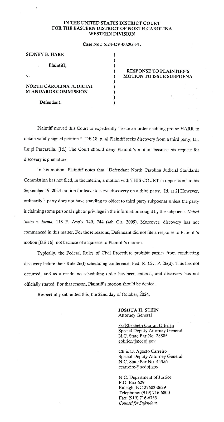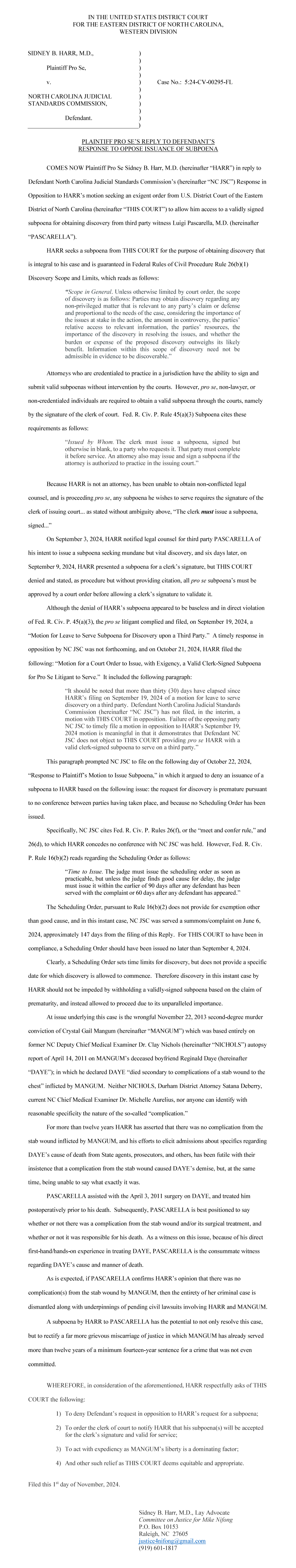 Harr's efforts to obtain a subpoena and the State's opposition -- filed October/November, 2024