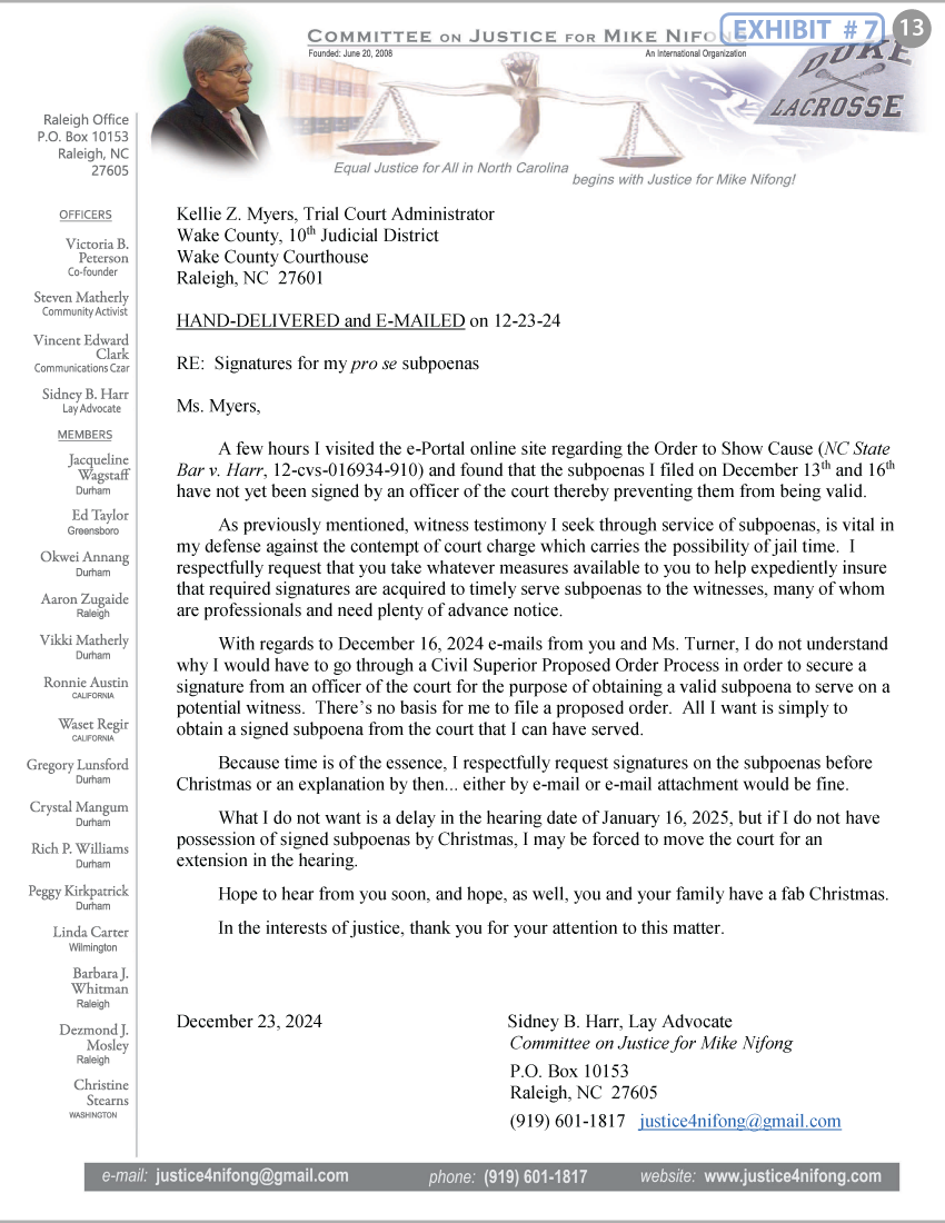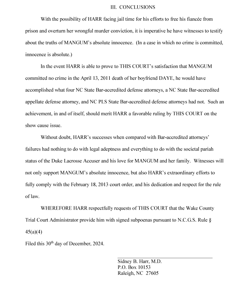 Dr. Harr's Motion to Compel Trial Court Administrator to Comply with Rule 45(a)(4) filed December 30, 2024