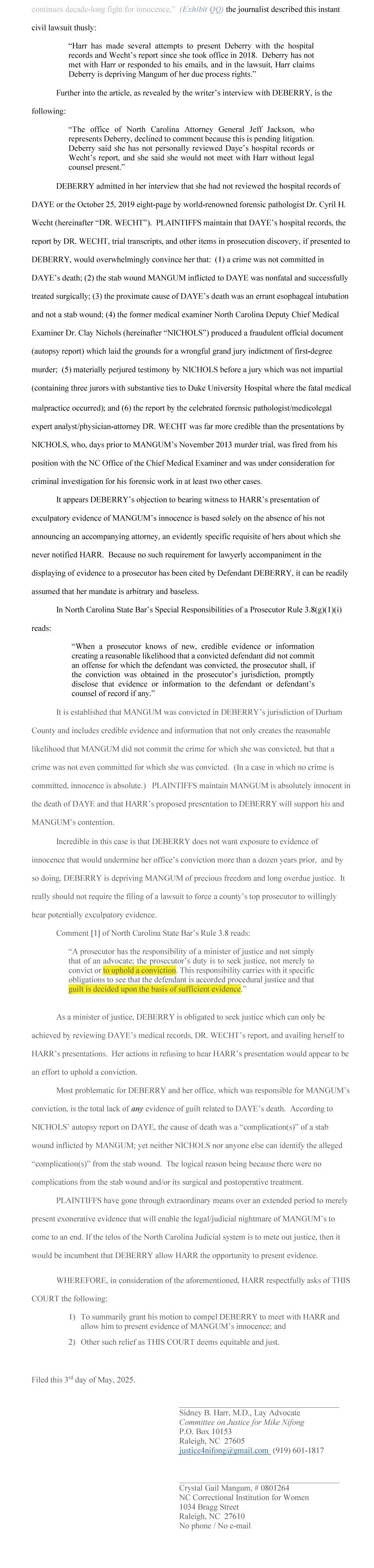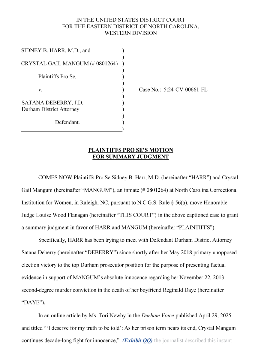 Harr and Mangum's Motion for Summary Judgment in Deberry case filed on May 3, 2025