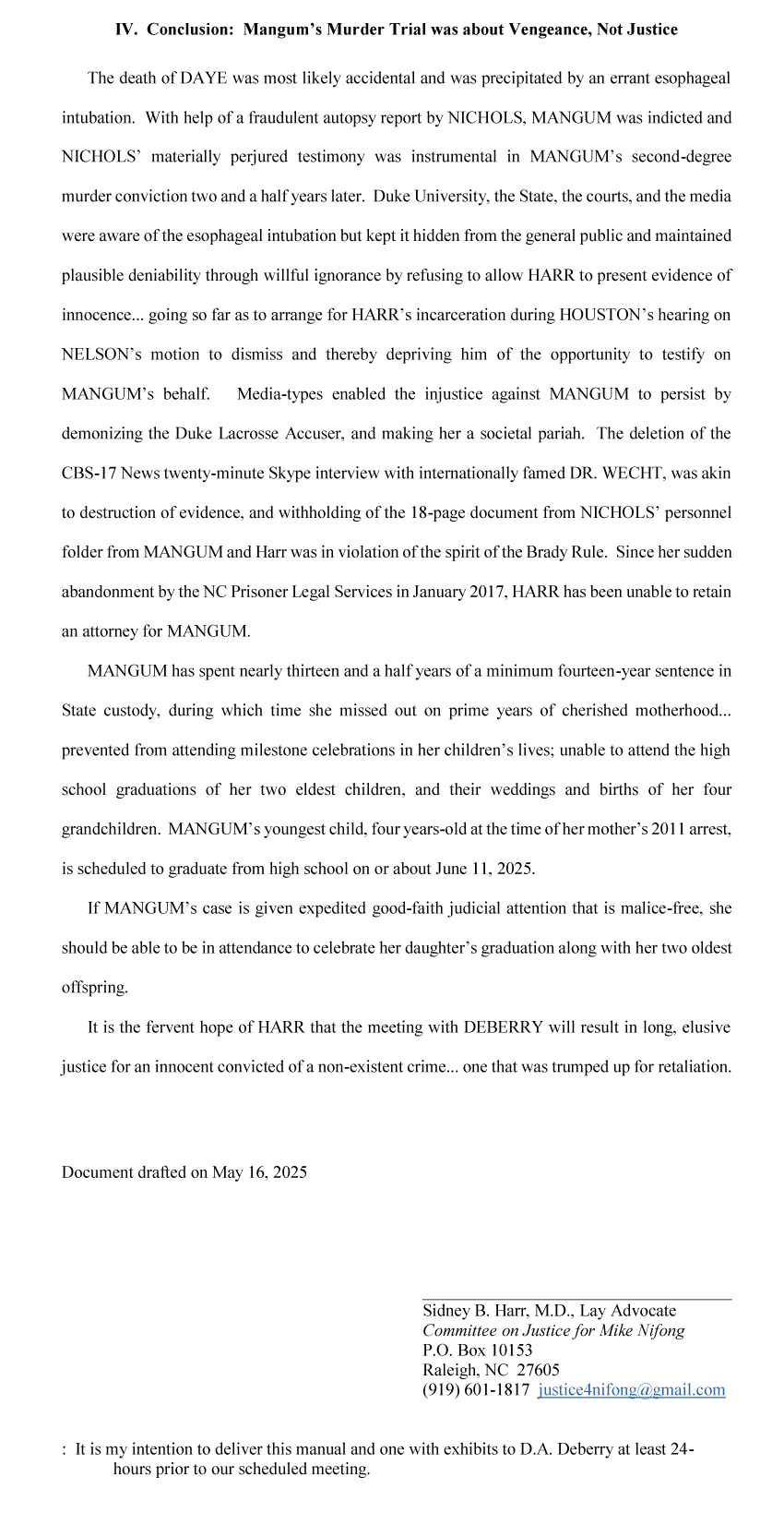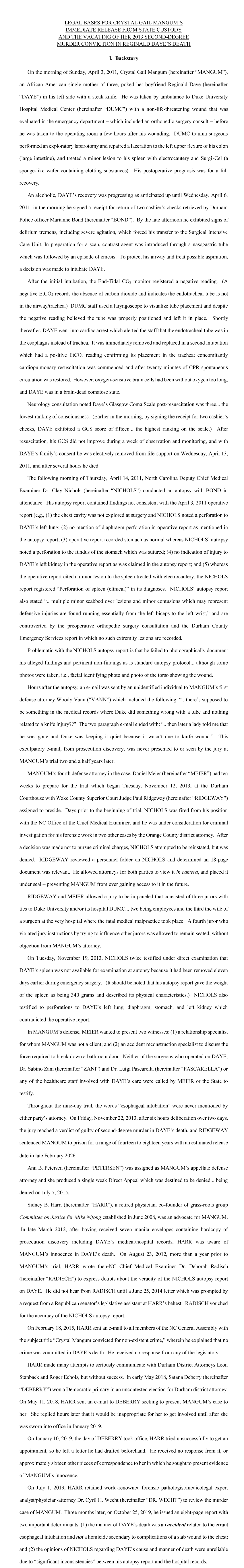 Dr. Harr and Ms. Mangum Presentation for Durham D.A. Satana Deberry