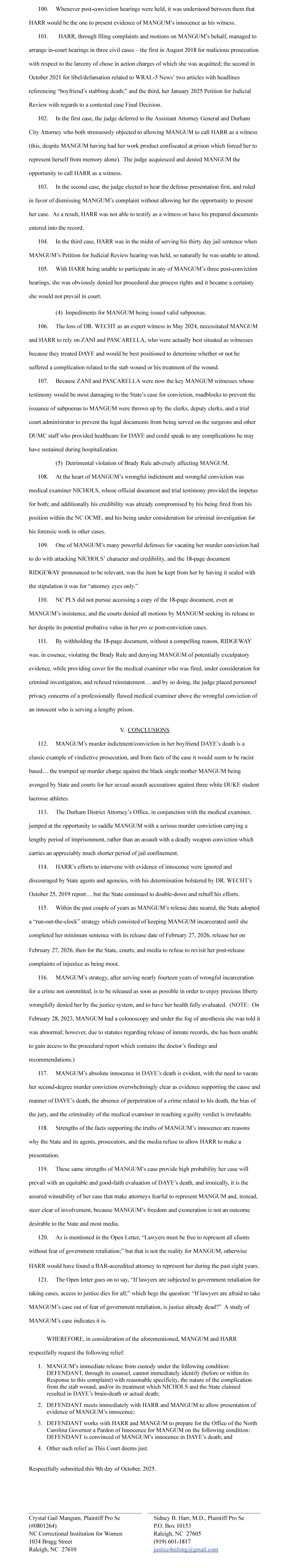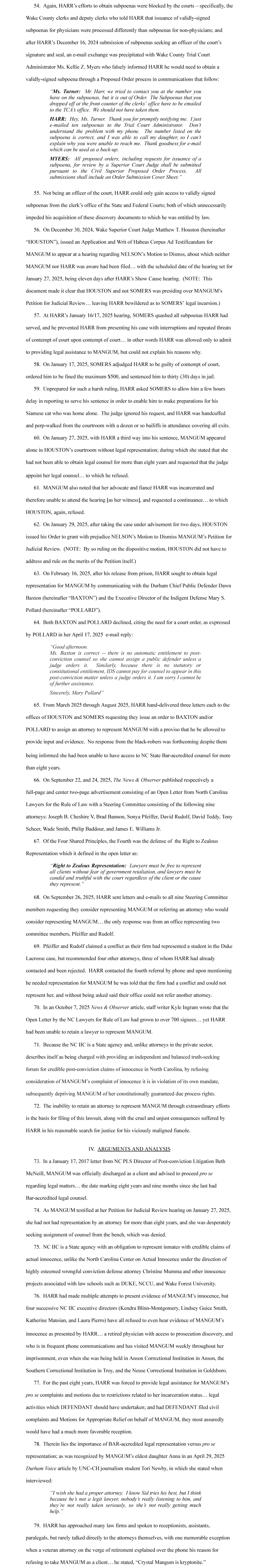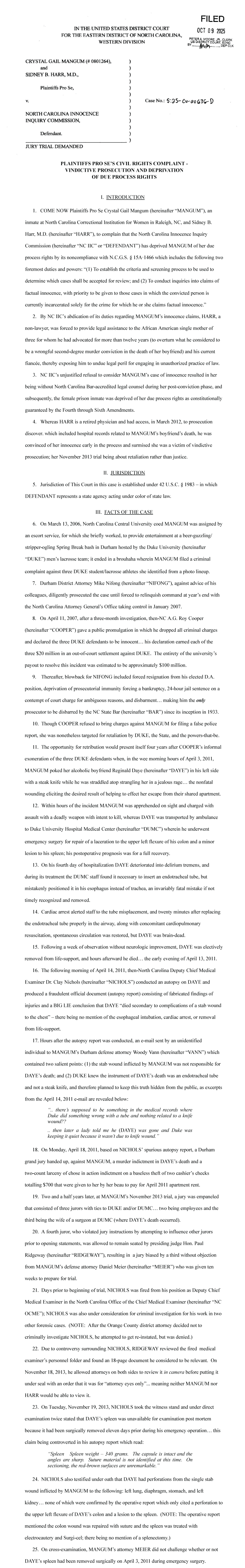 Brief Initial Complaint Mangum, Harr v. NC Innocence Inquiry Commission