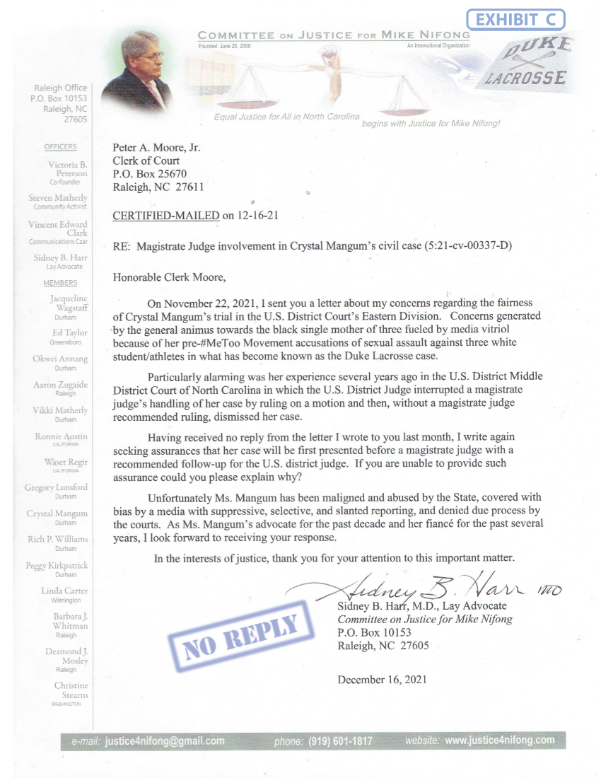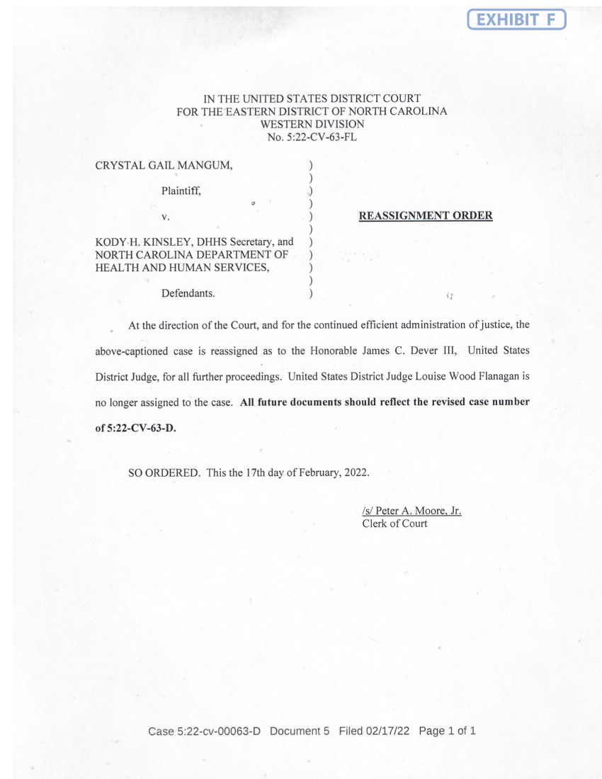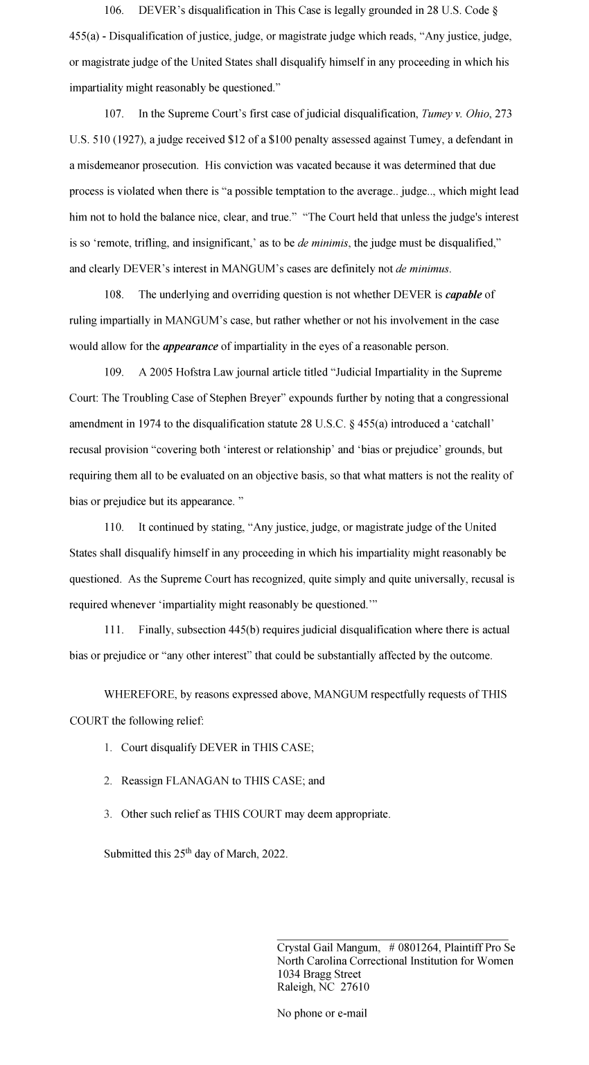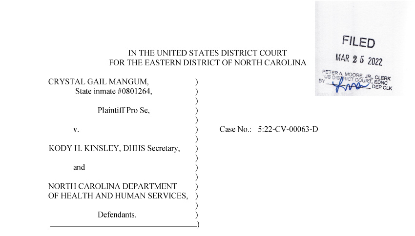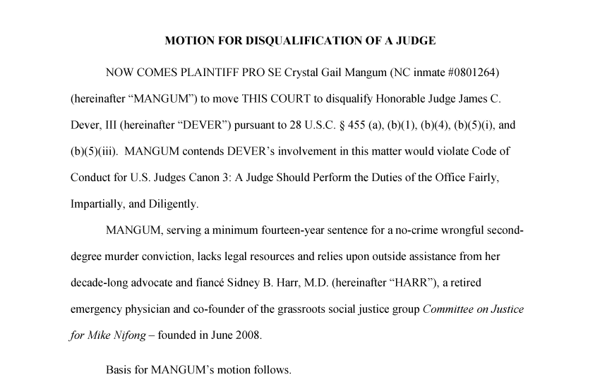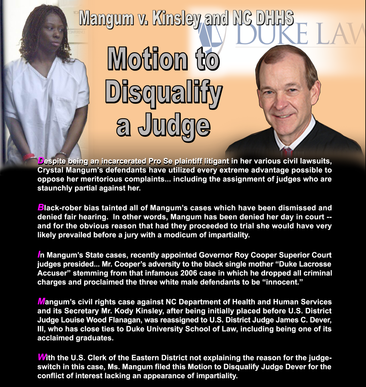 Mangum v. Kinsley and DHHS: Motion to Disqualify the Judge