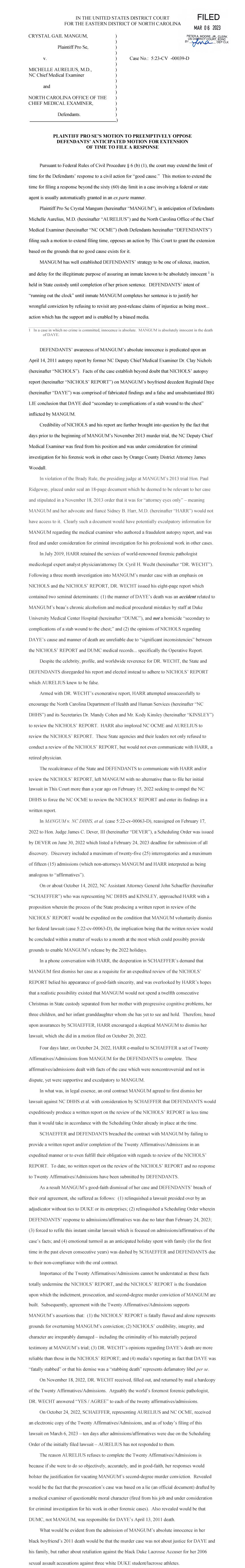 Mangum's Motion to Preemptively Oppose Anticipated Extension to File