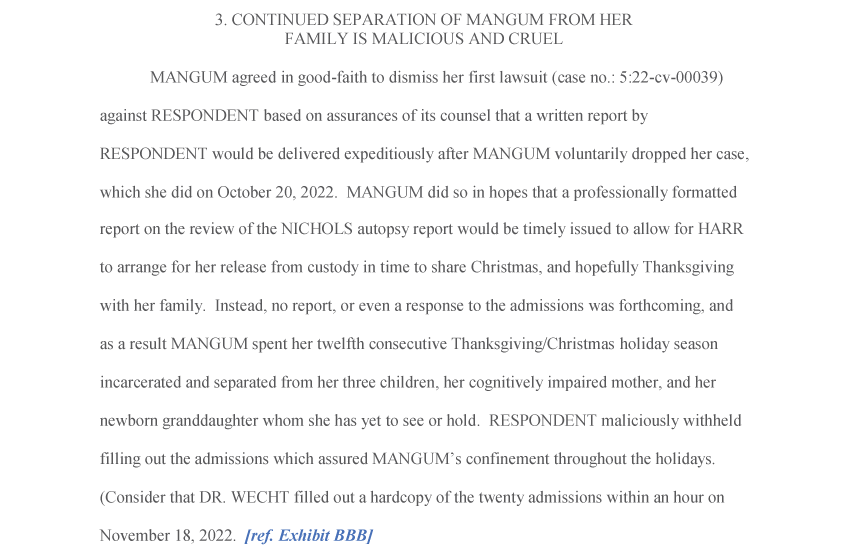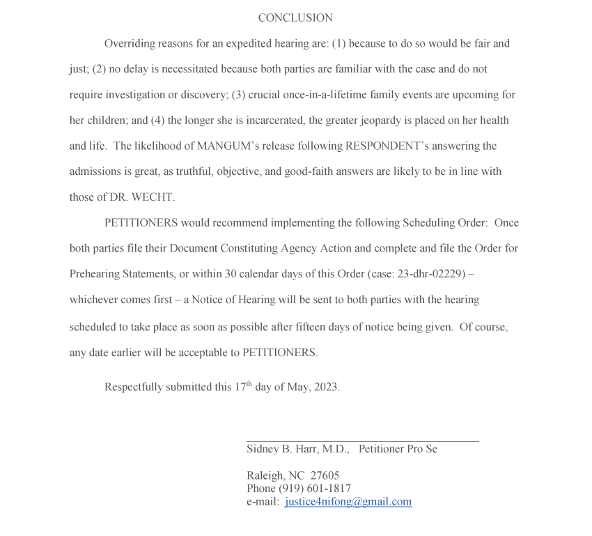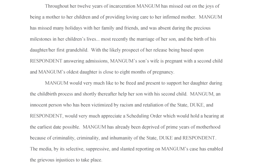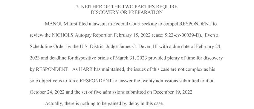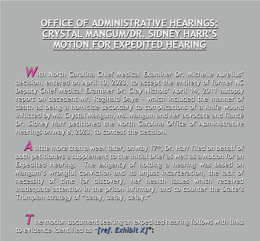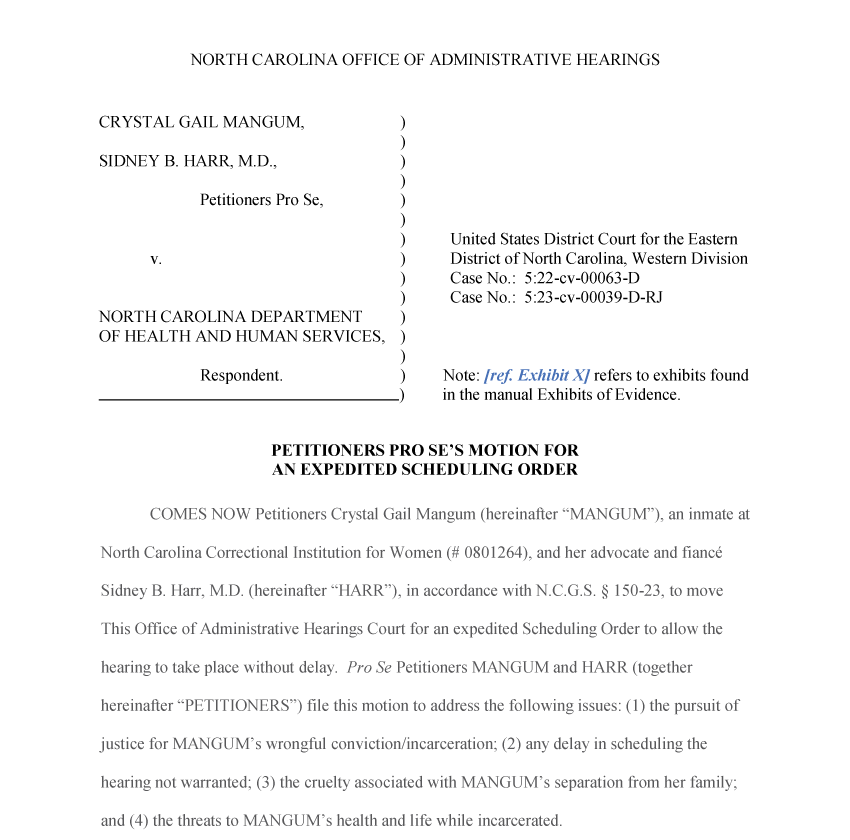Crystal Mangum's Motion for Expedited Scheduling Order filed May 18, 2023