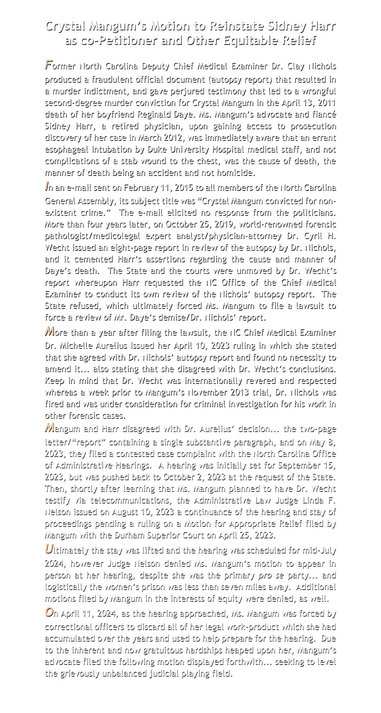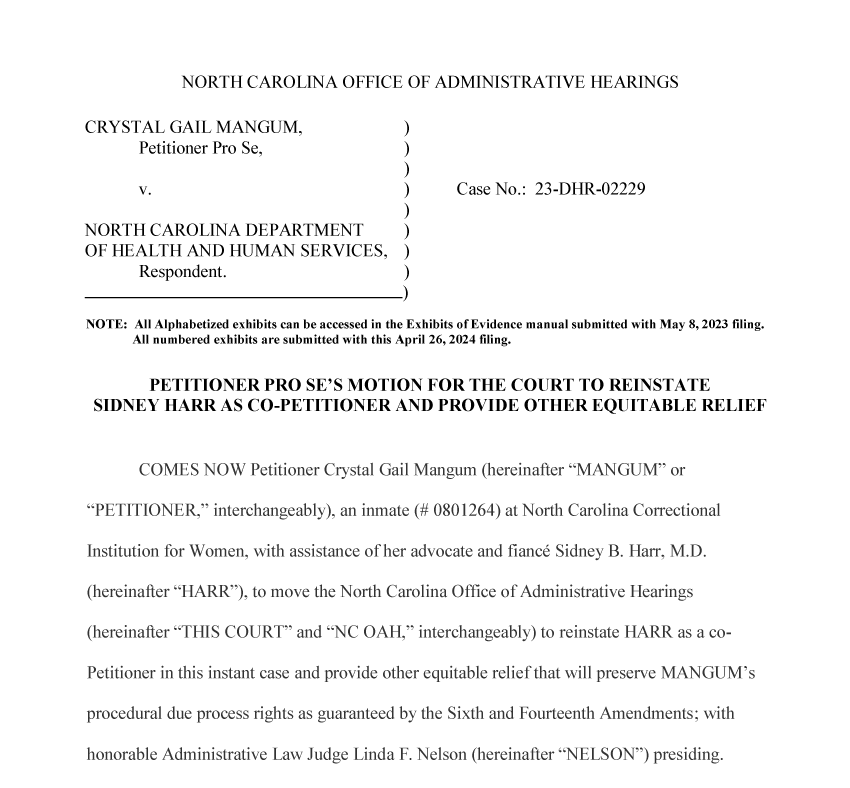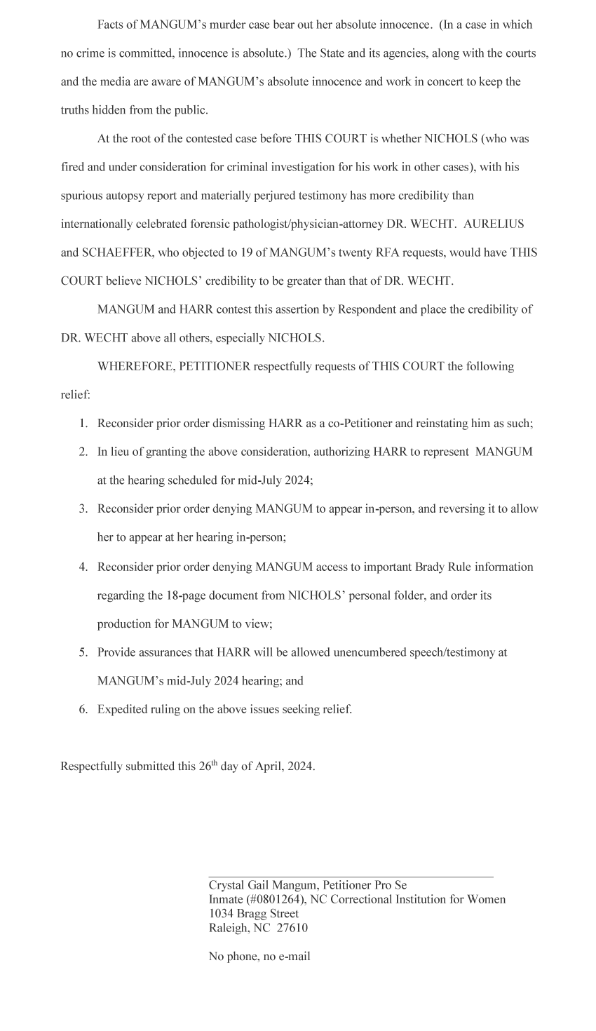 Mangum Motion to Reinstate Harr as Co-Petitioner and other relief