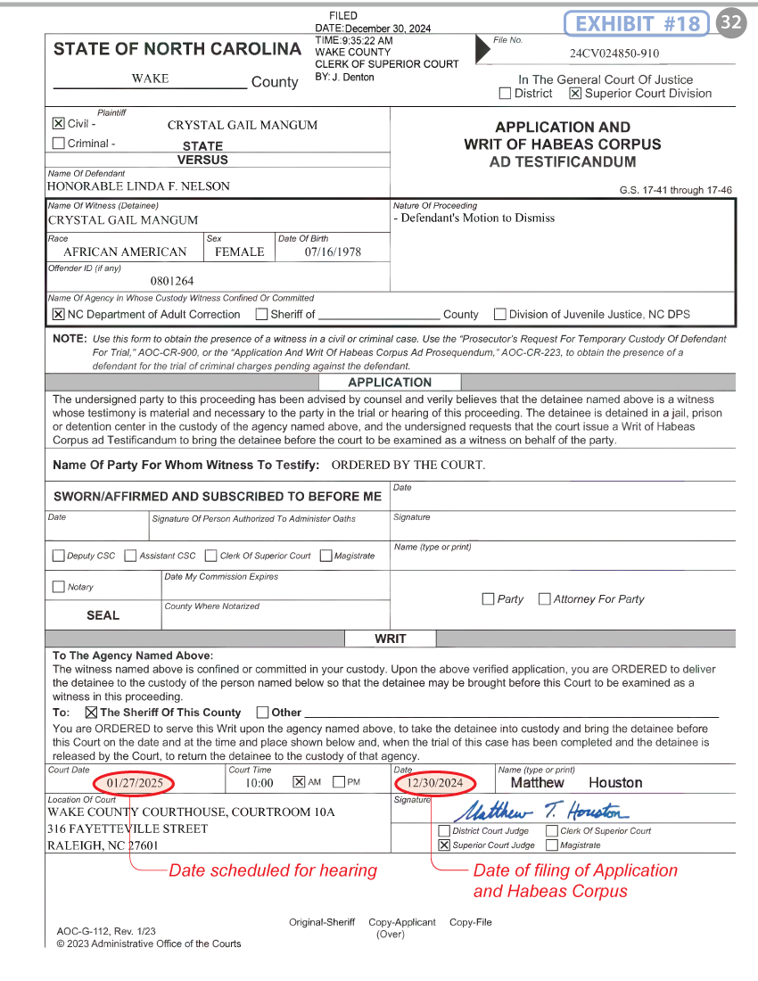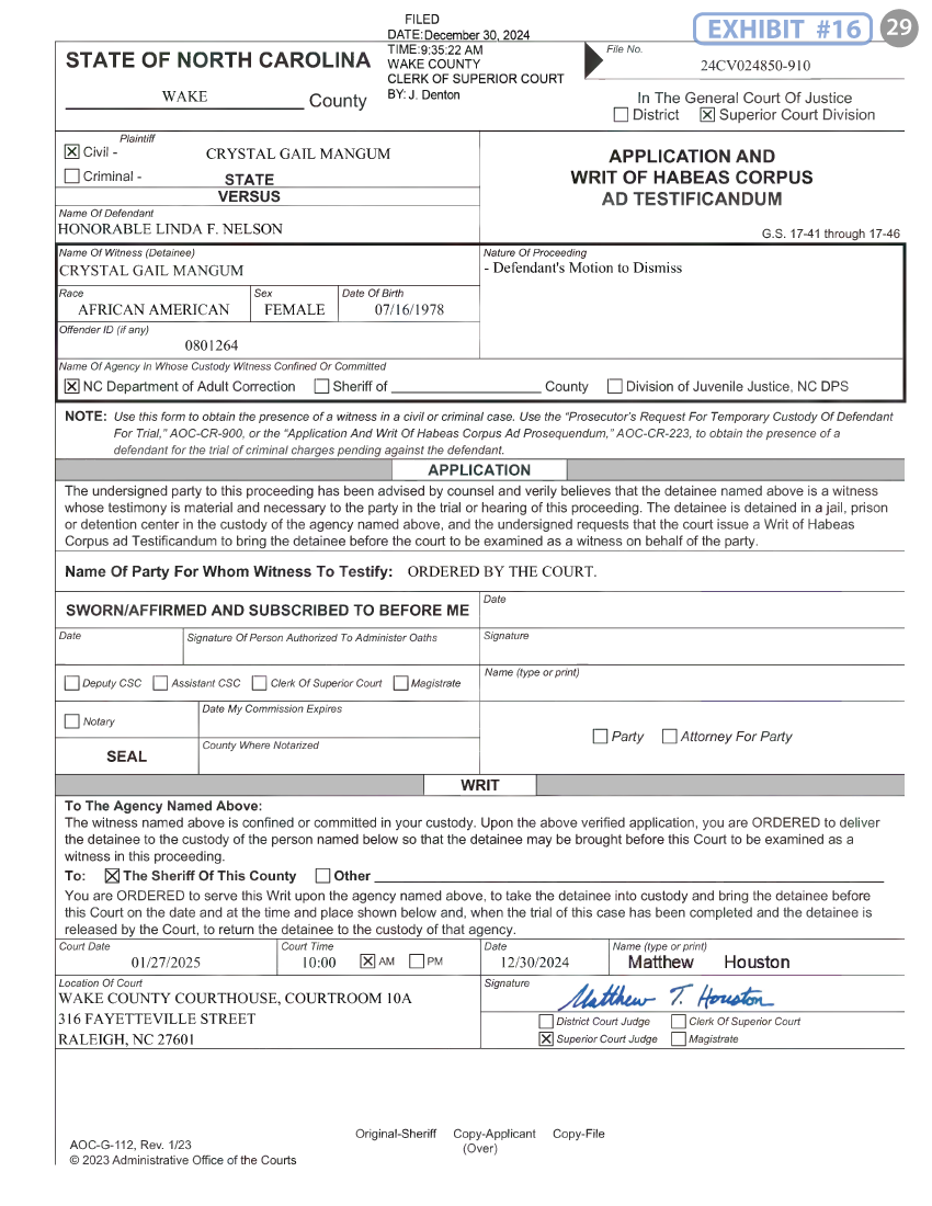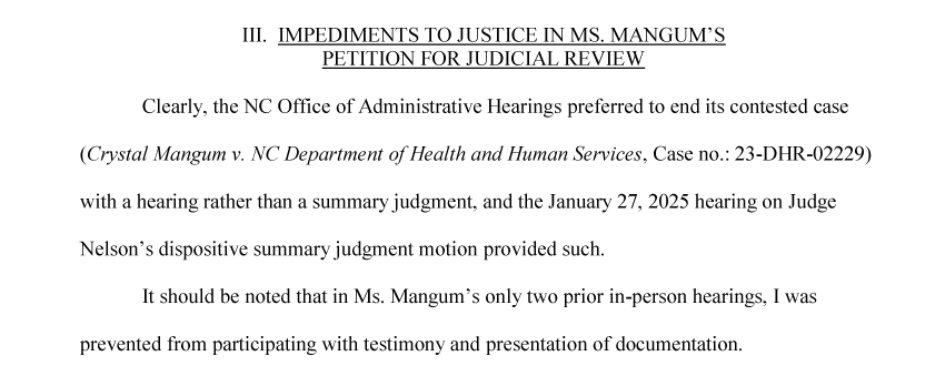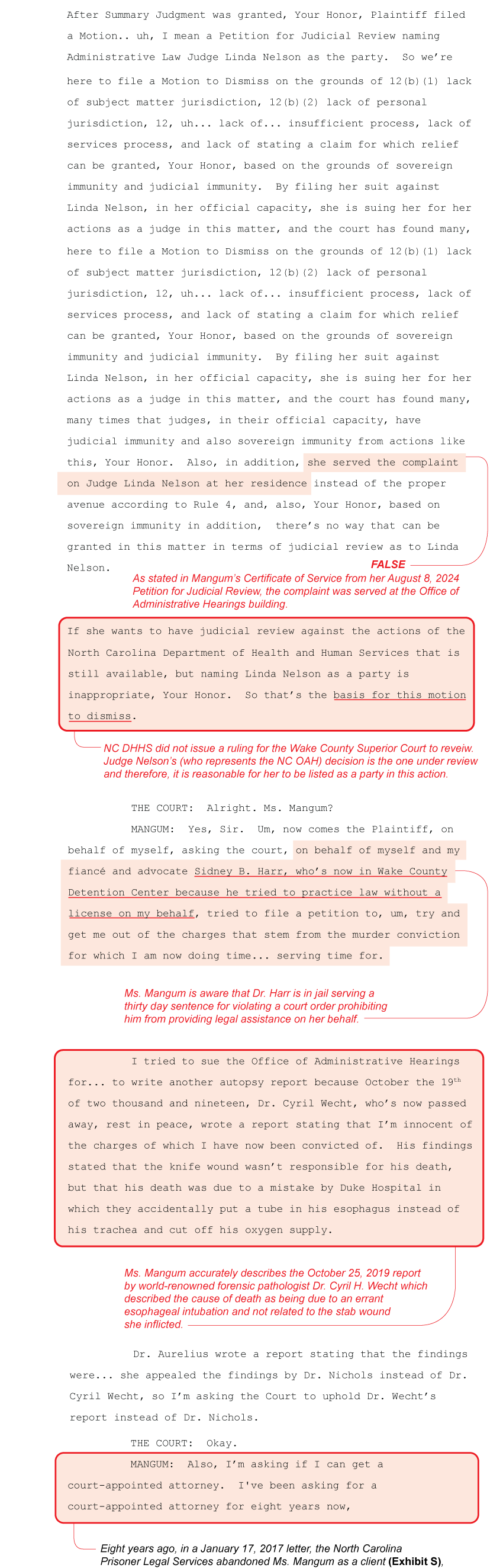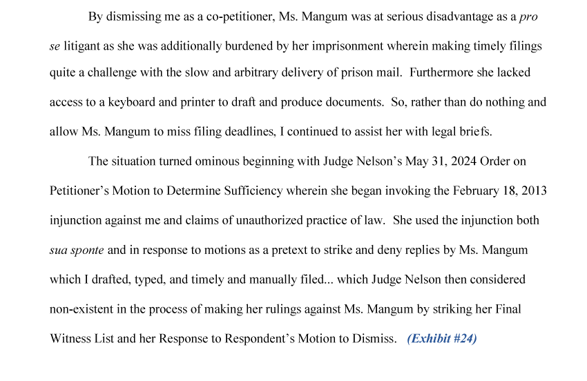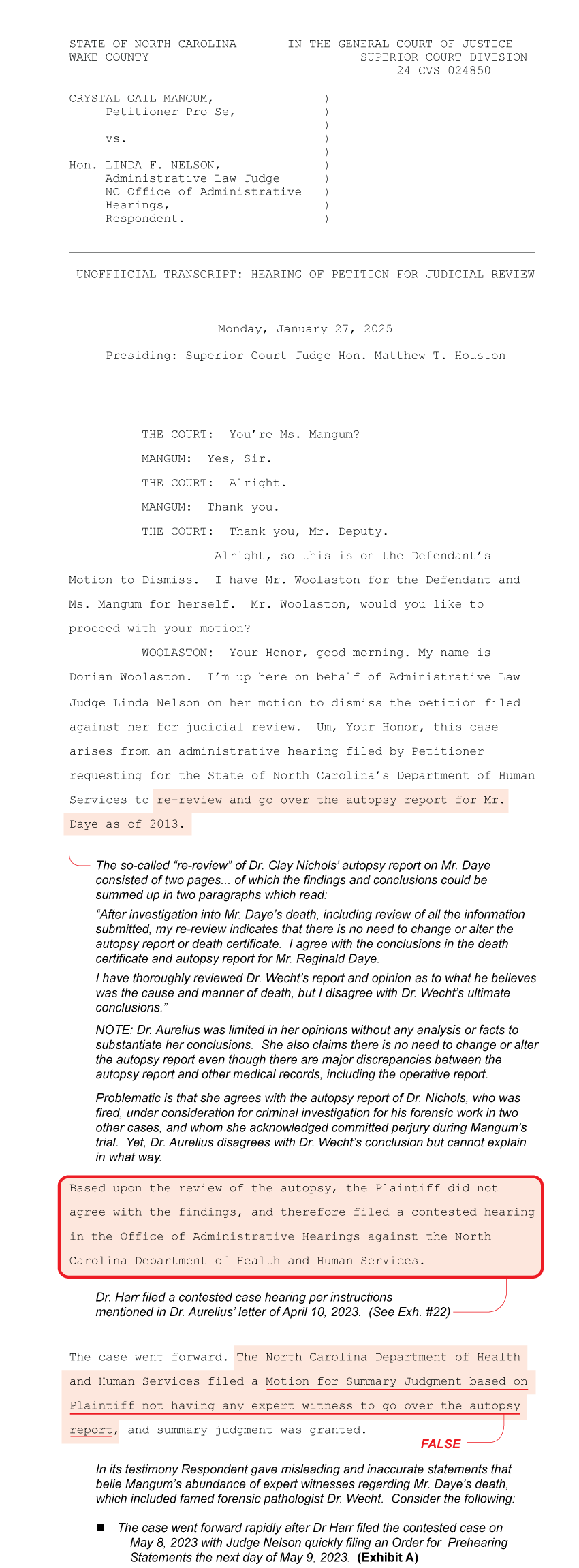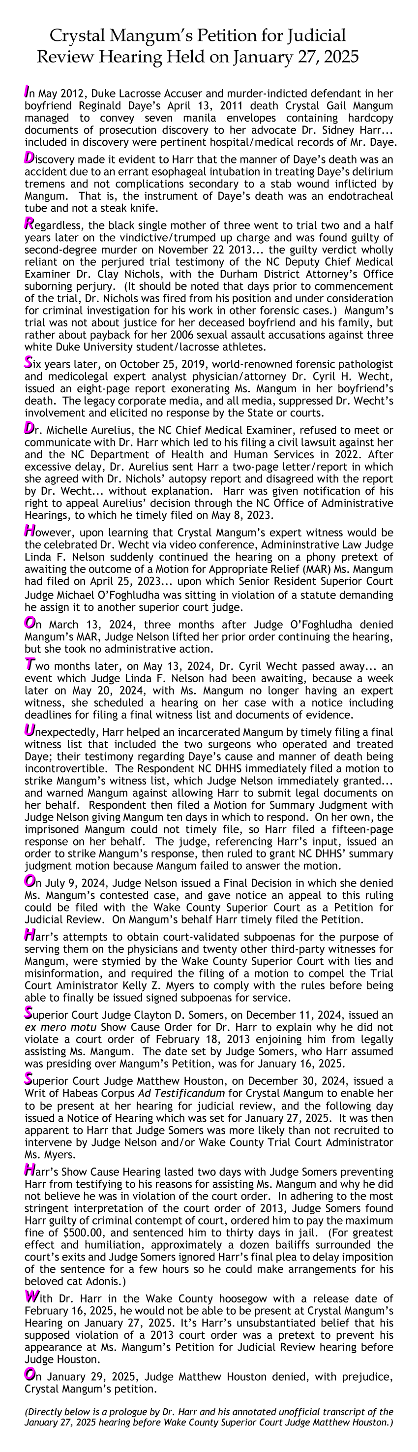 Crystal Mangum v. Judge Nelson Judicial Review Hearing of January 27, 2025