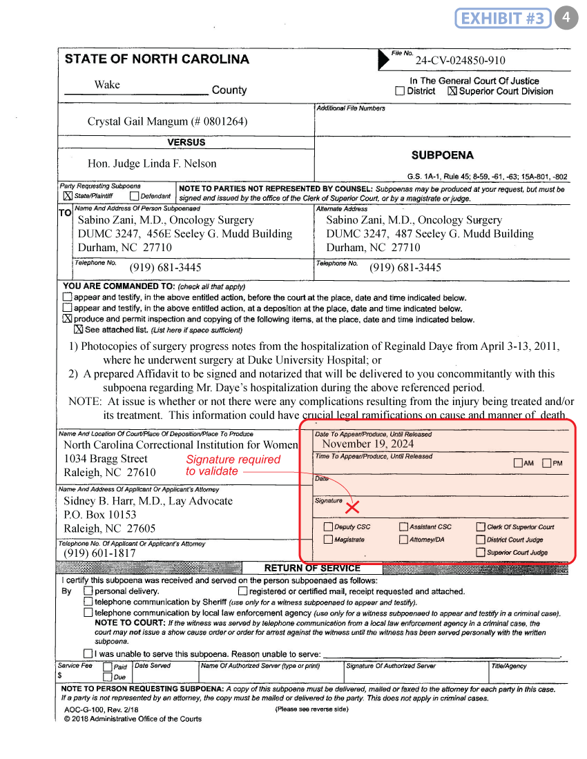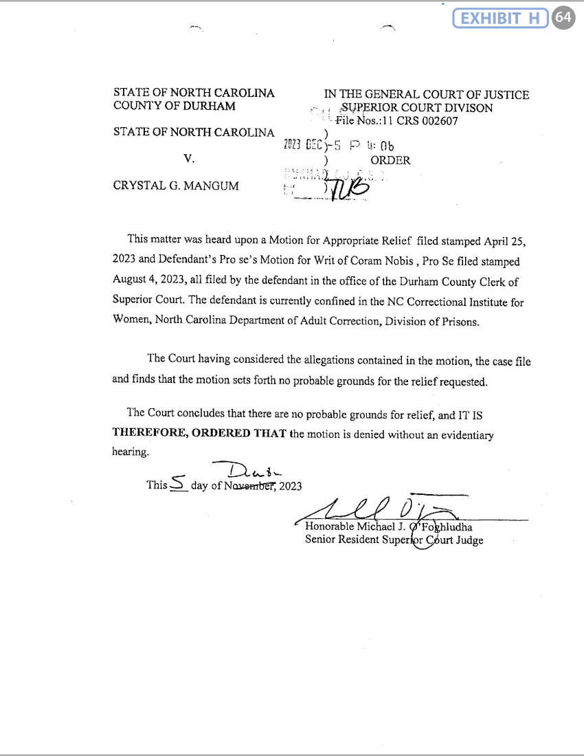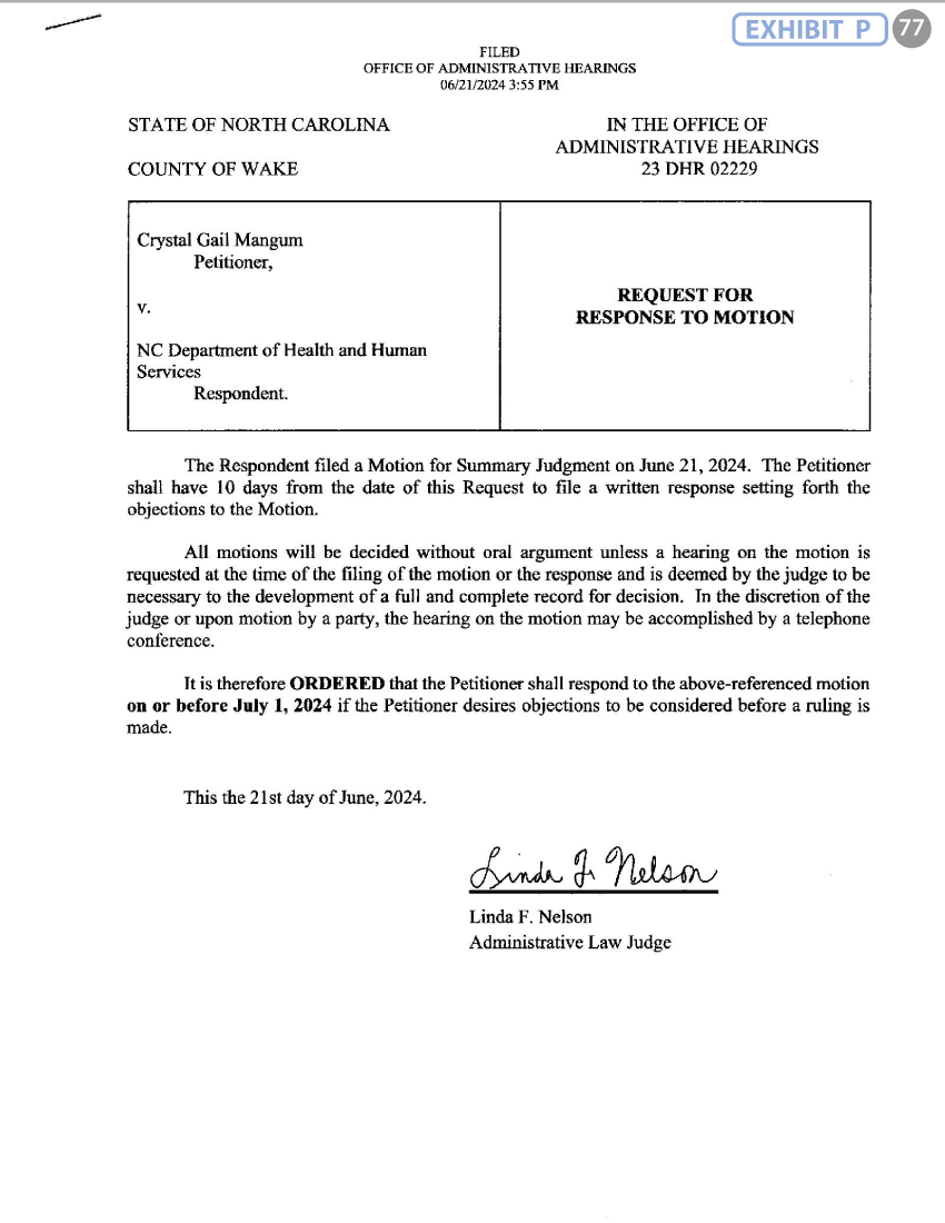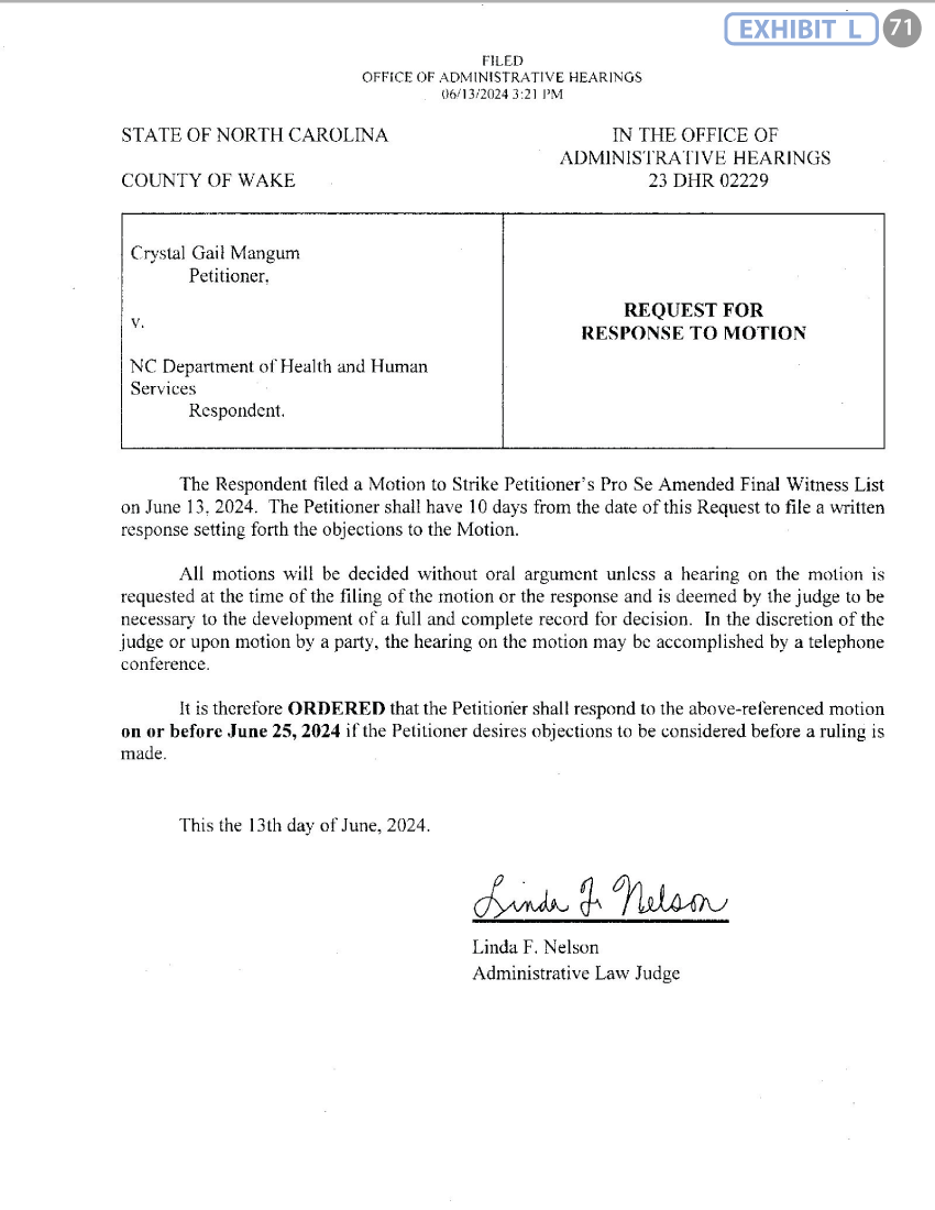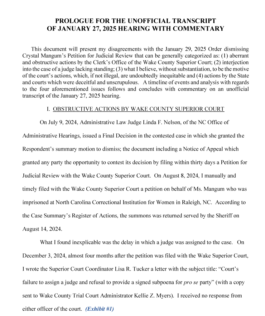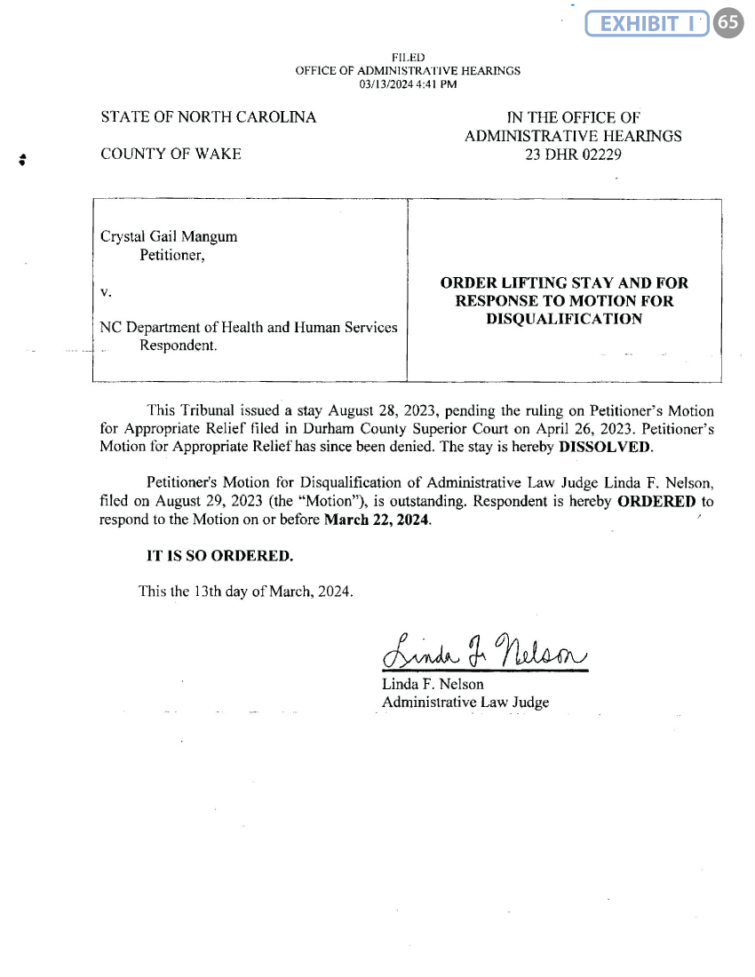 Crystal Mangum v. Judge Nelson Judicial Review Hearing of January 27, 2025