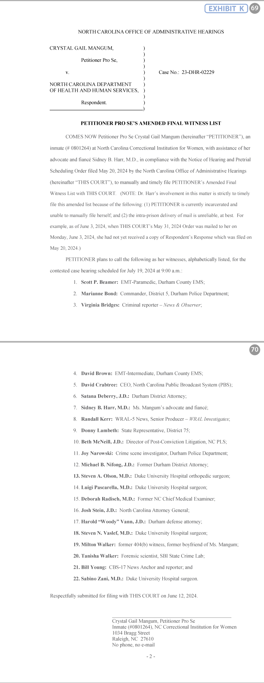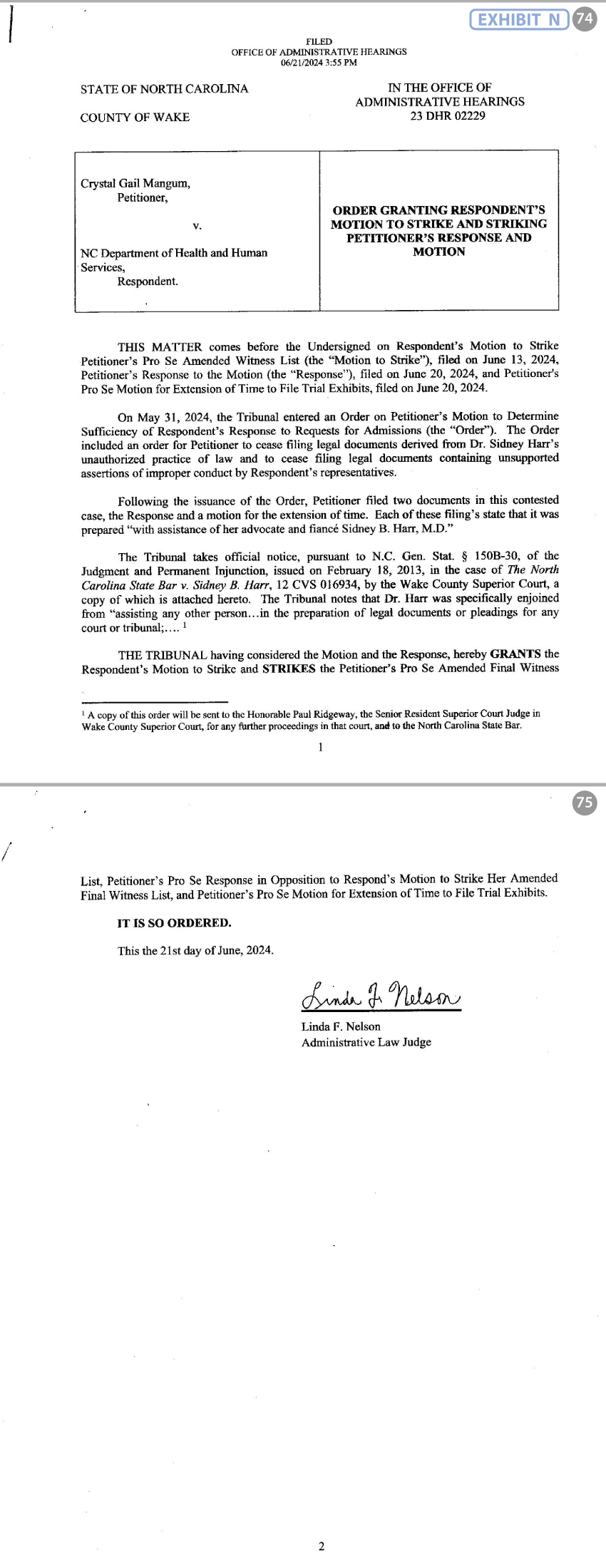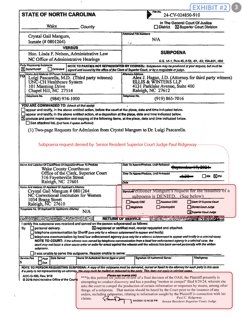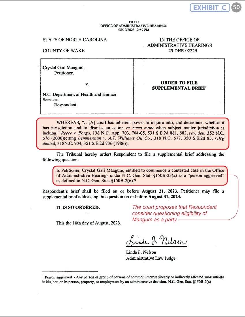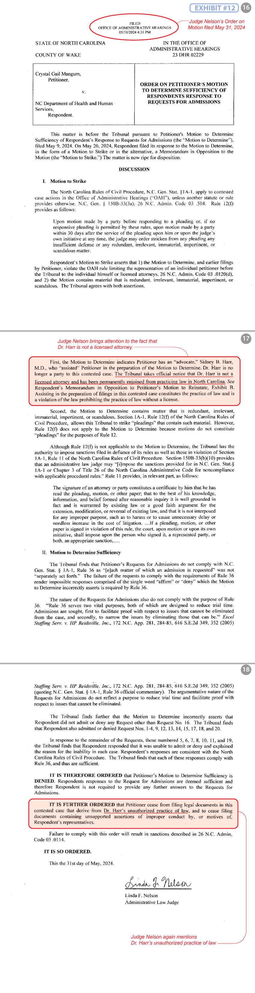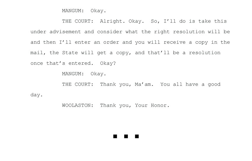 Crystal Mangum v. Judge Nelson Judicial Review Hearing of January 27, 2025