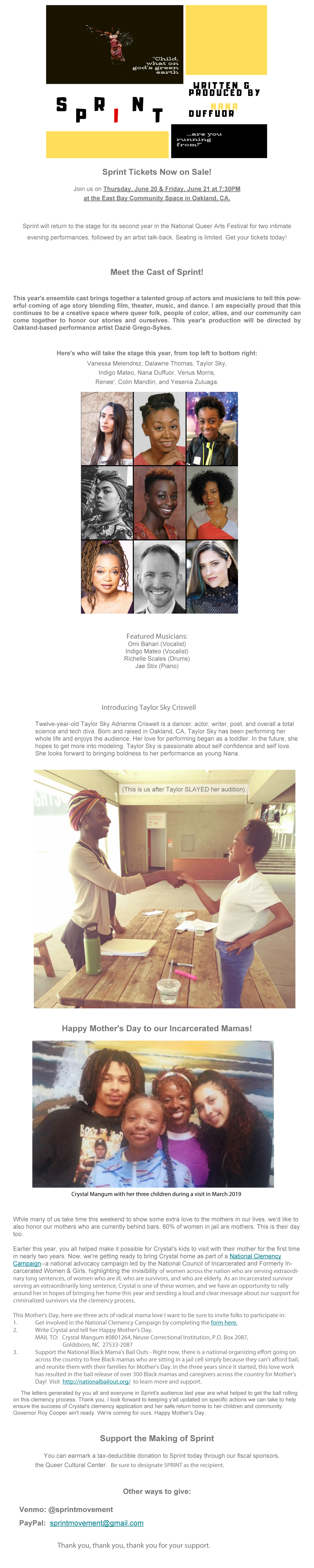 Nana Duffuor's Sprint Program for 2019... Mother's Day