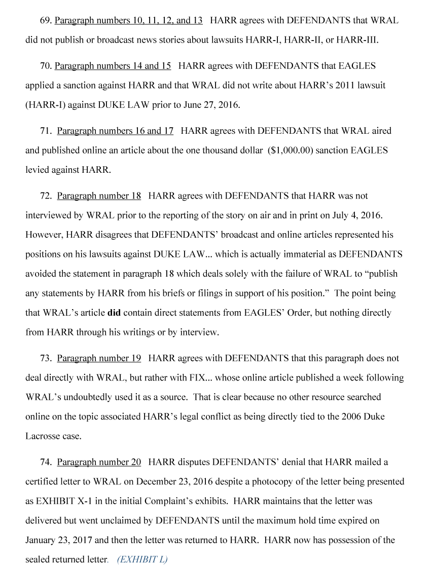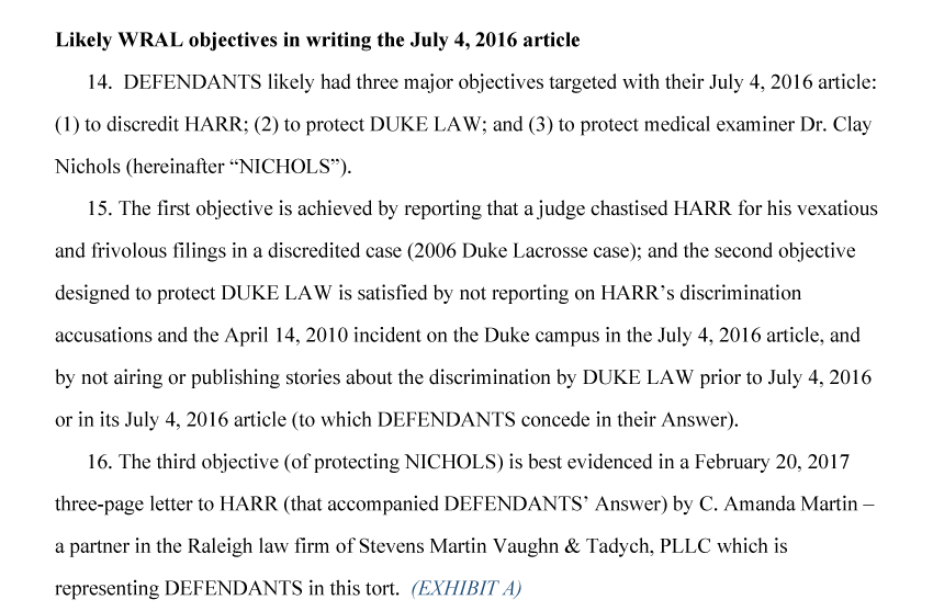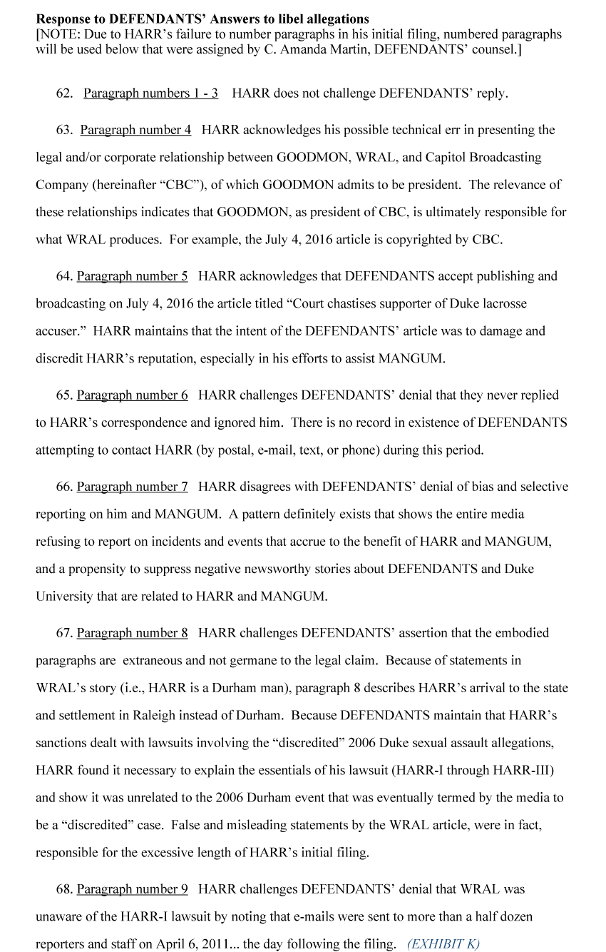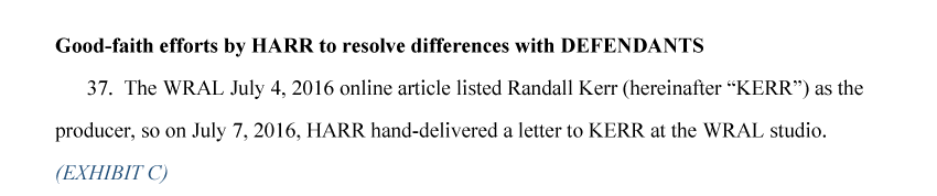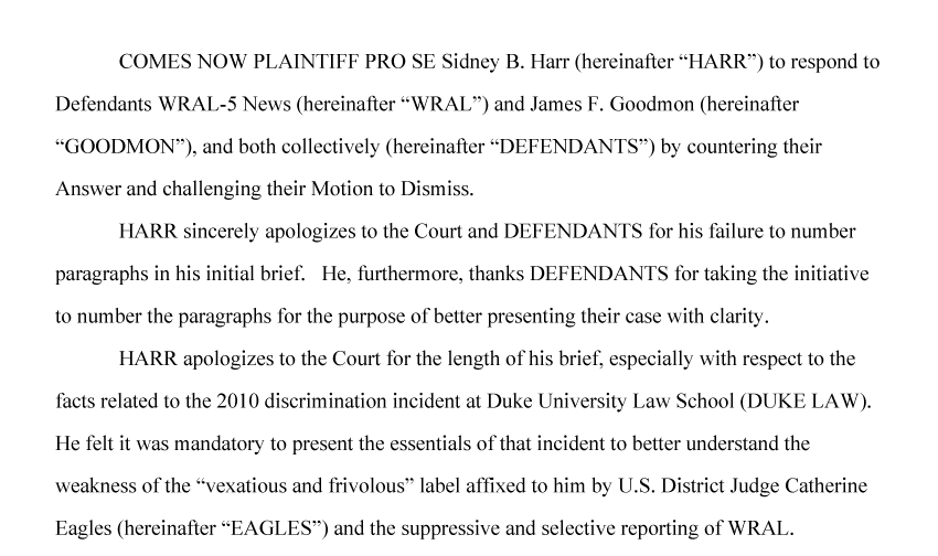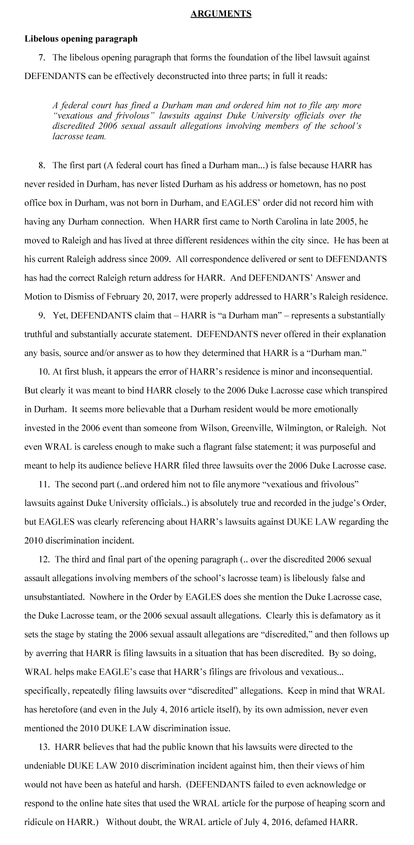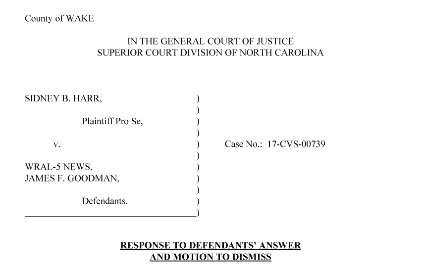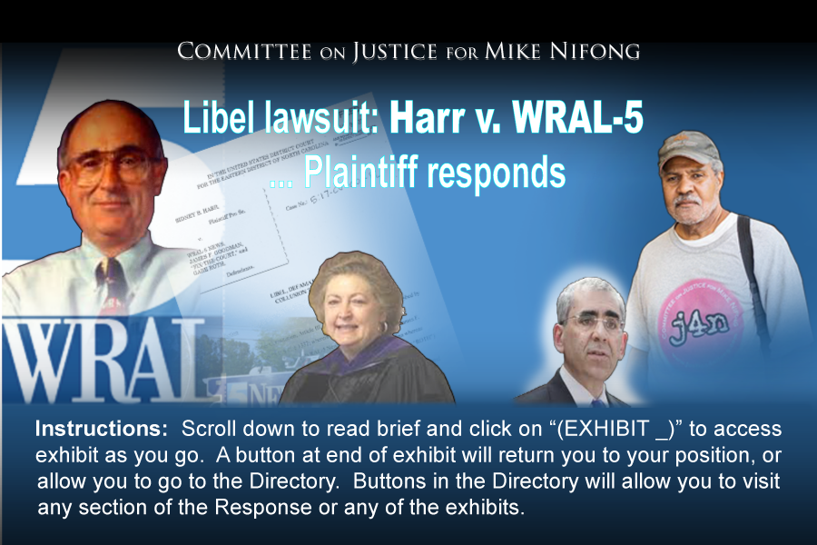 Harr v. WRAL: Plaintiff's Response and Exhibits
