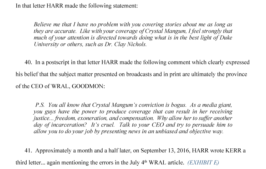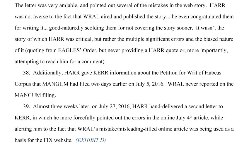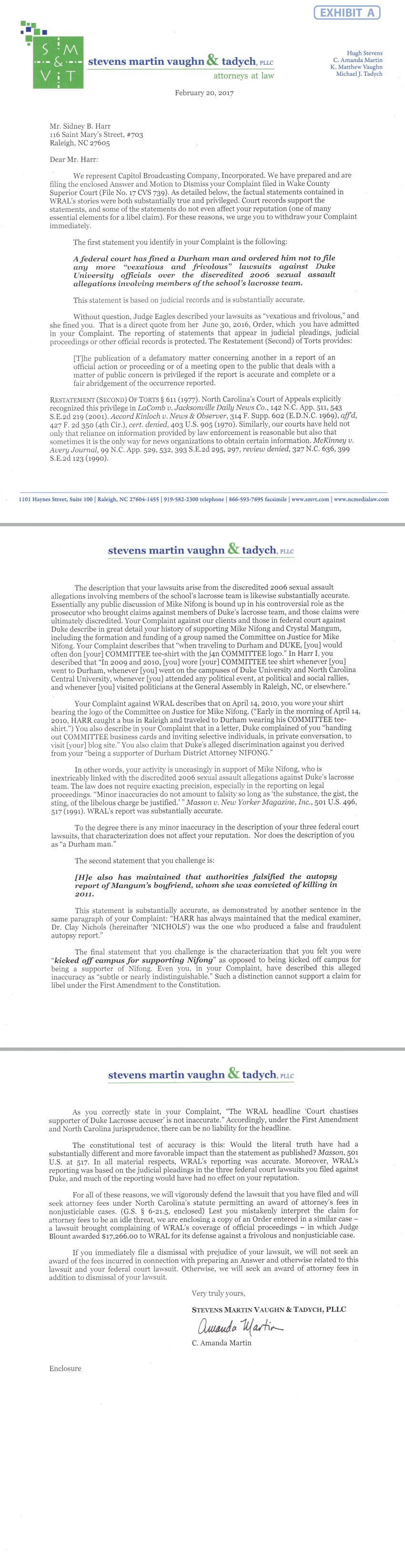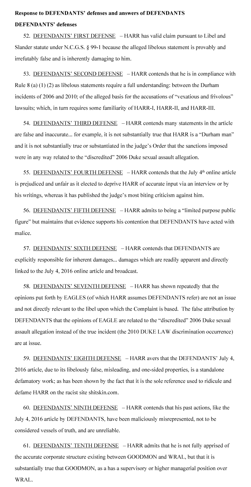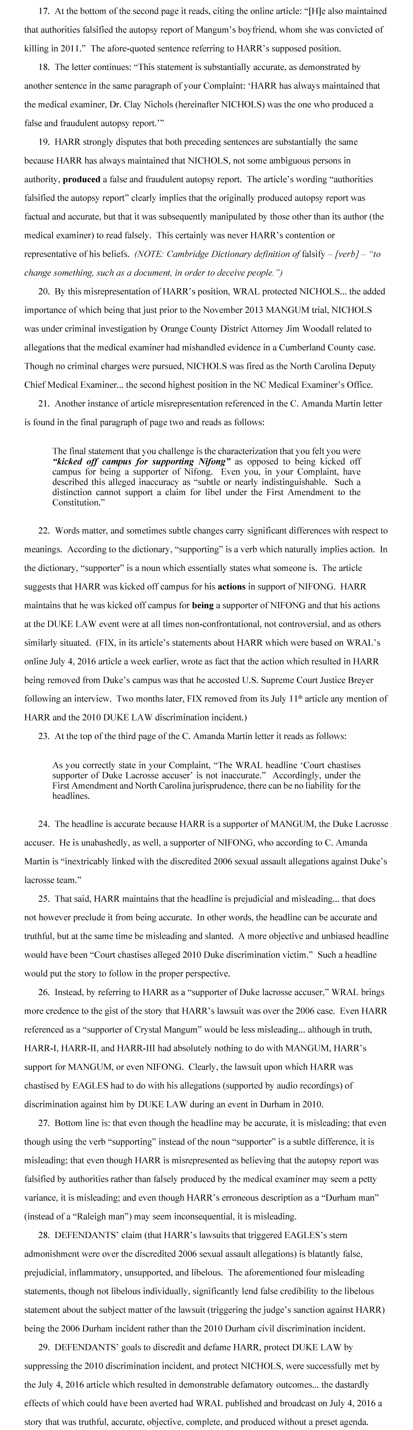Harr v. WRAL: Plaintiff's Response and Exhibits
