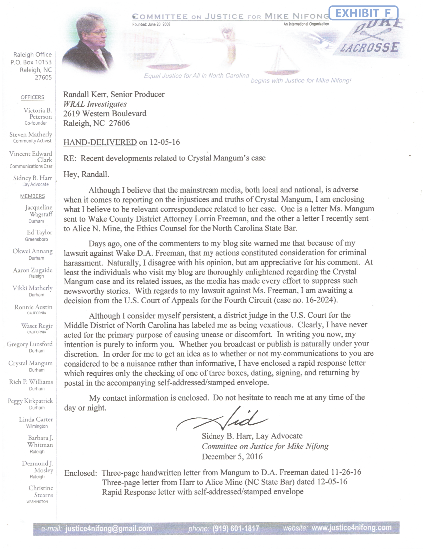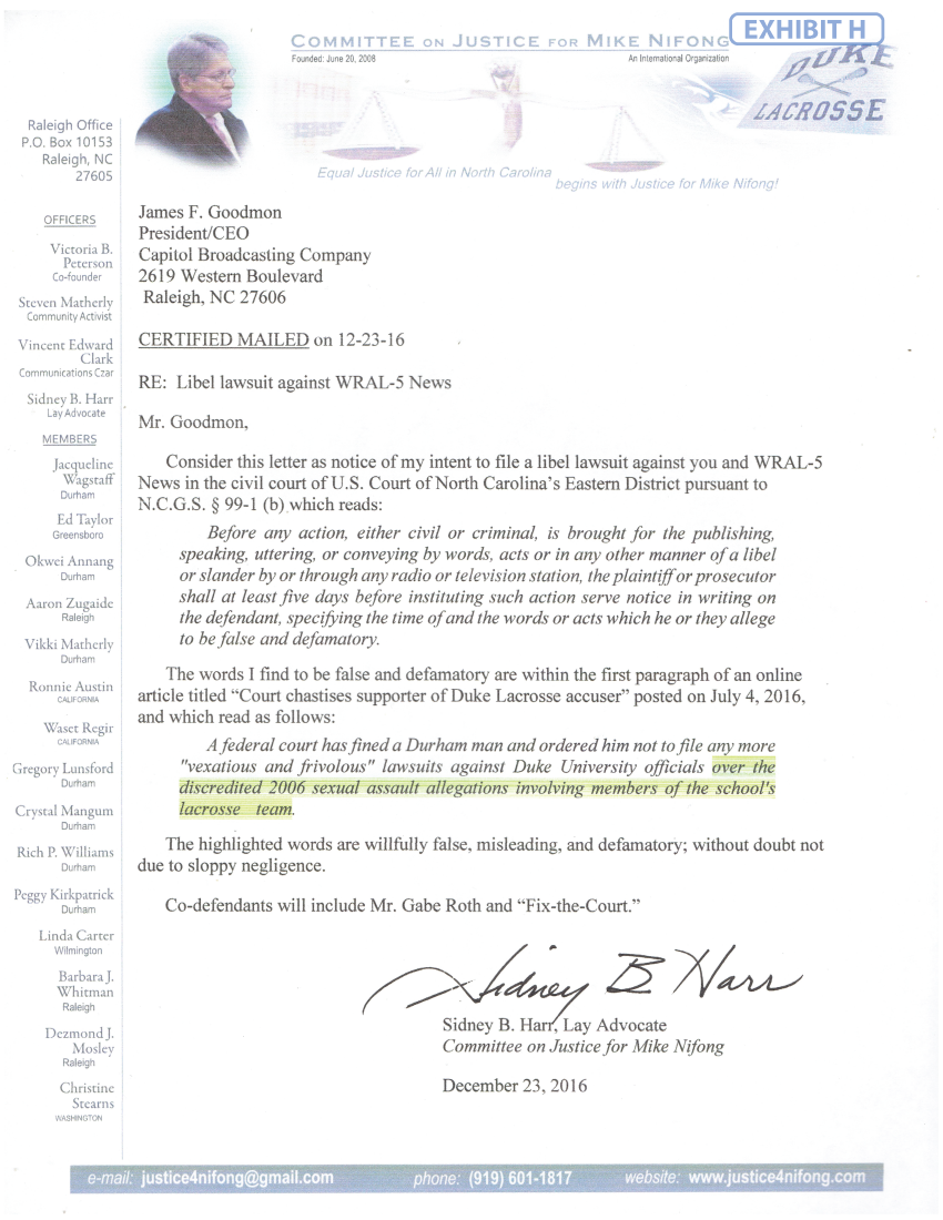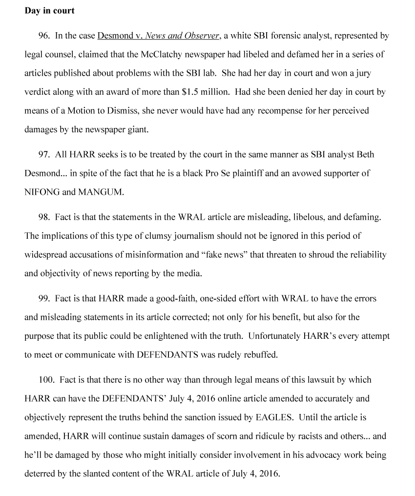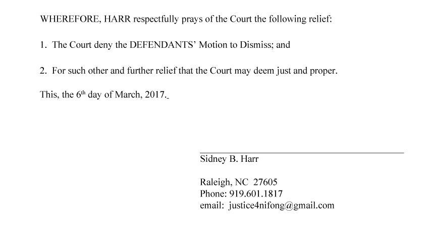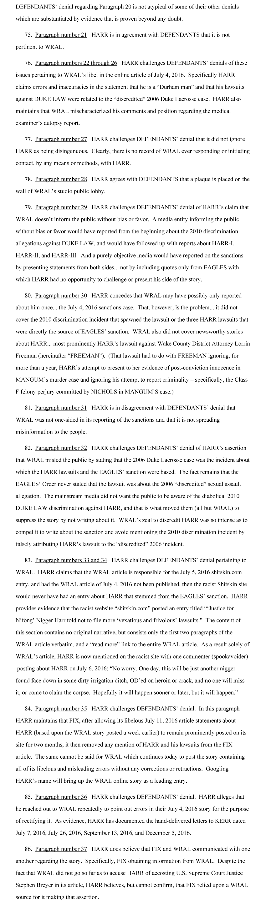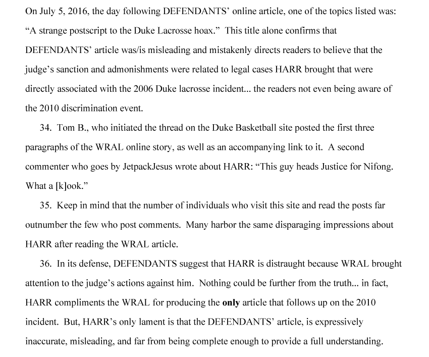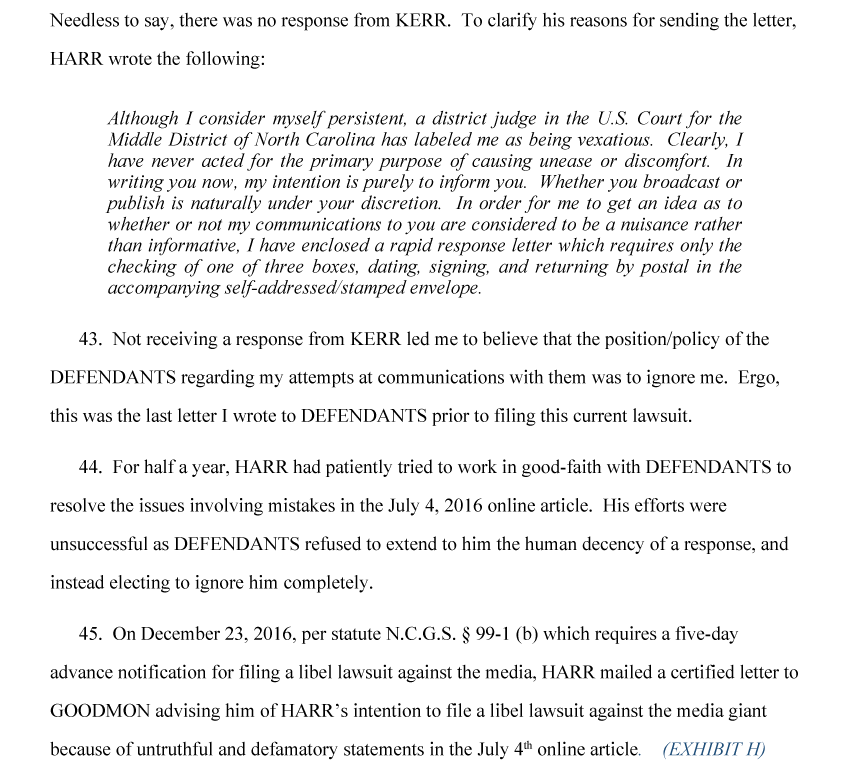 Harr v. WRAL: Plaintiff's Response and Exhibits