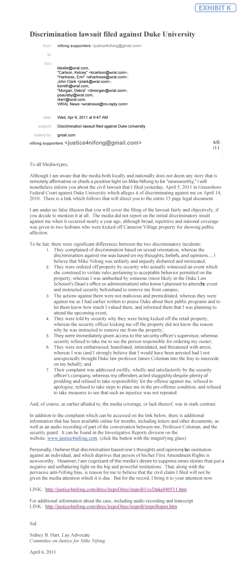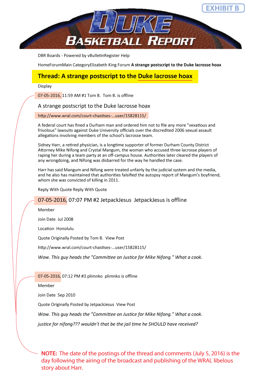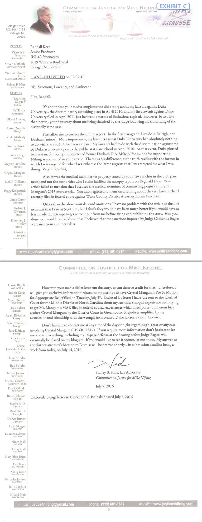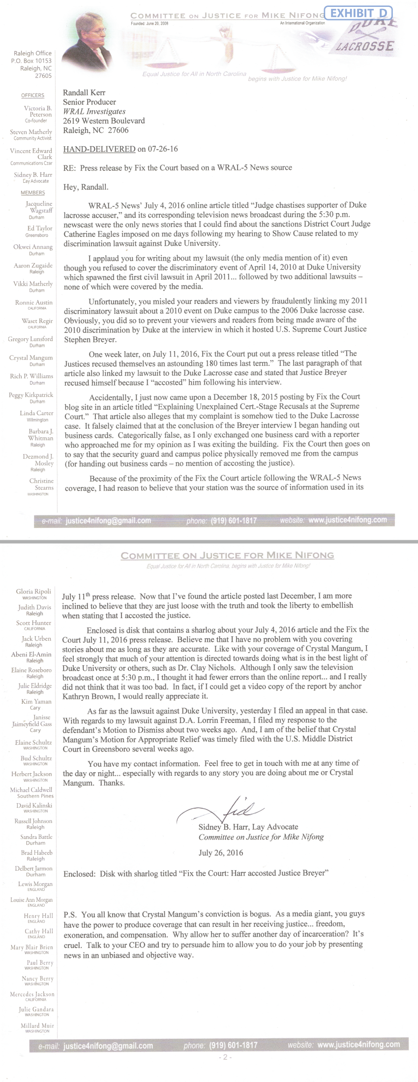 Harr v. WRAL: Plaintiff's Response and Exhibits