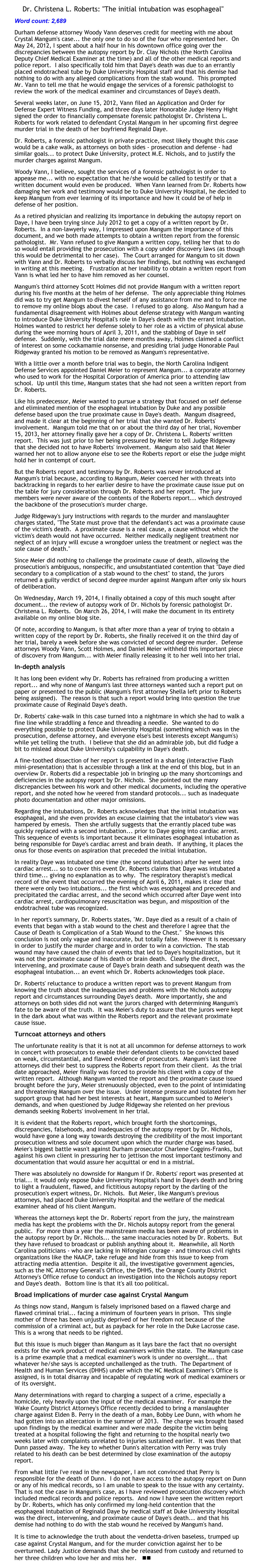 Dr. Christena L. Roberts: "The initial intubation was esophageal"