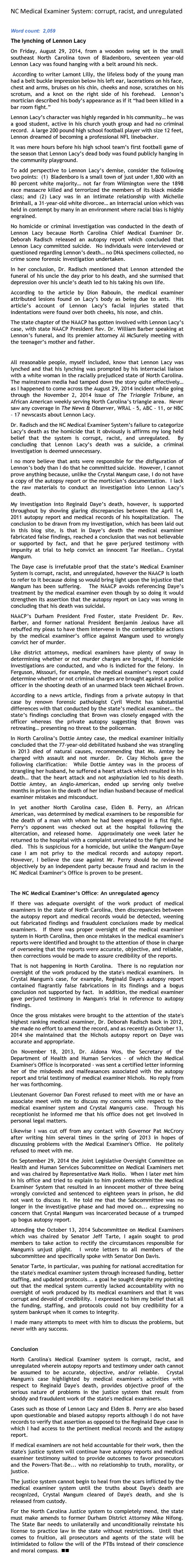 NC Medical Examiner System: Corrupt, racist, and unregulated