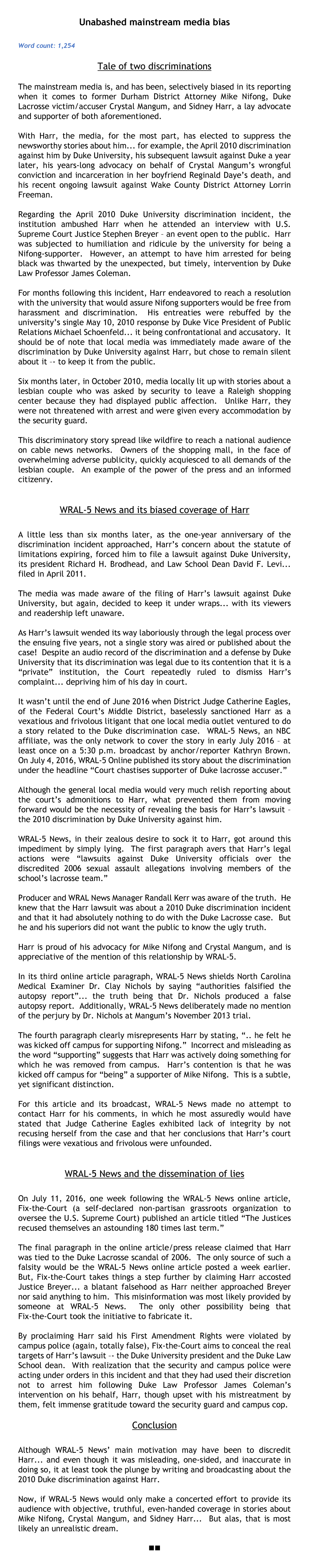 Unabashed mainstream media bias against Nifong, Mangum, Harr