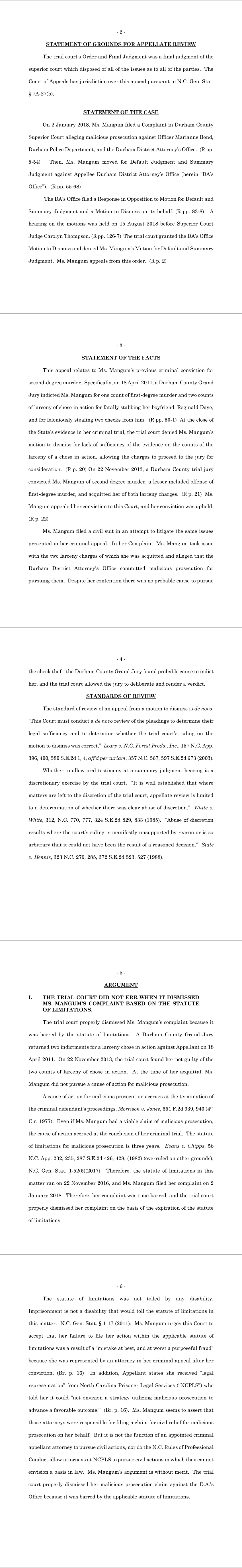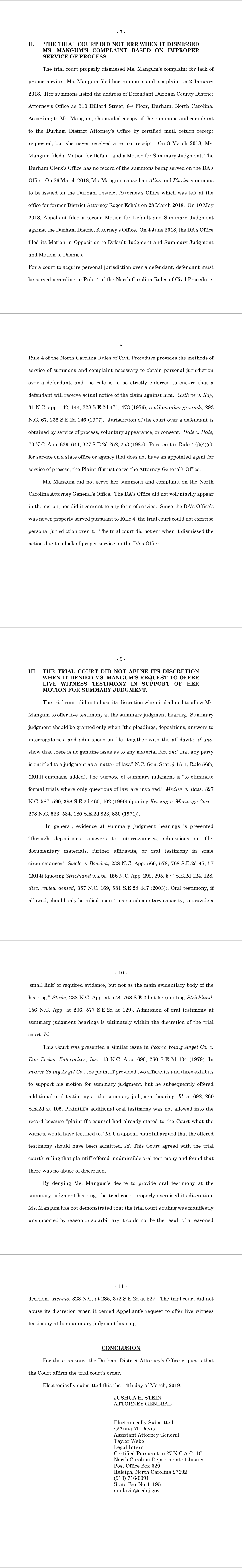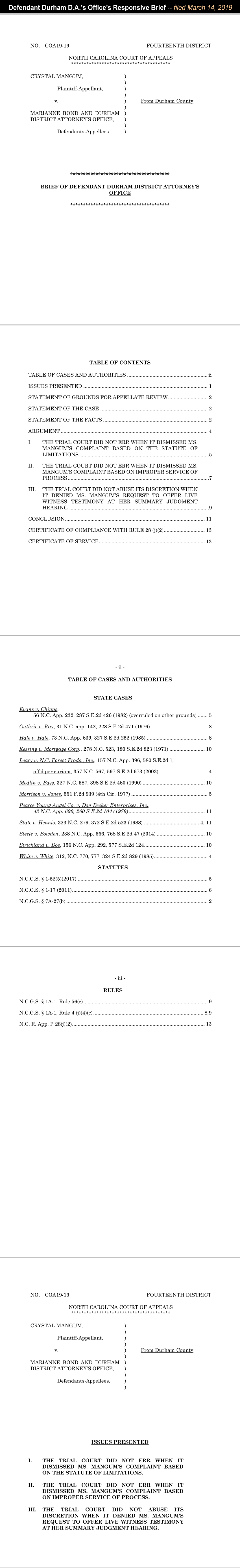 Durham District Attorney's Office Responsive Brief of March 14, 2019